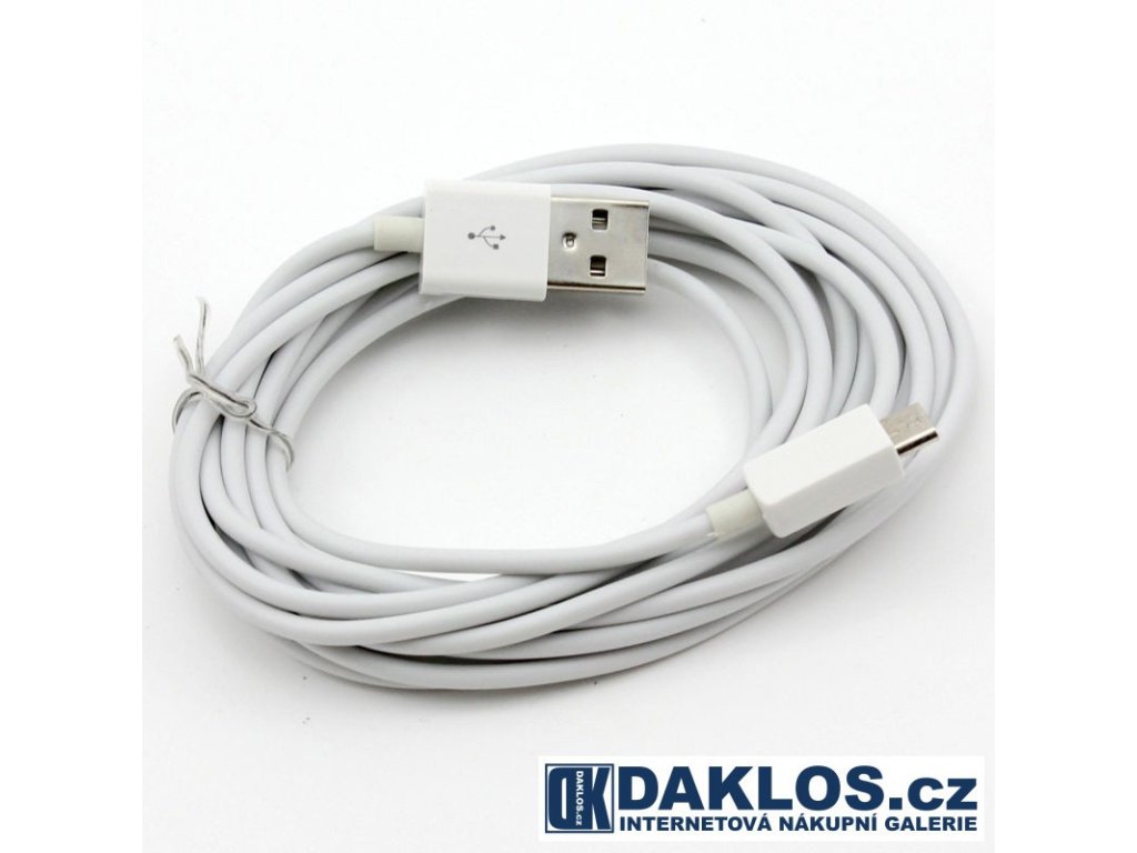 3 m - Datový a nabíjecí kabel z USB do Micro USB - bílý