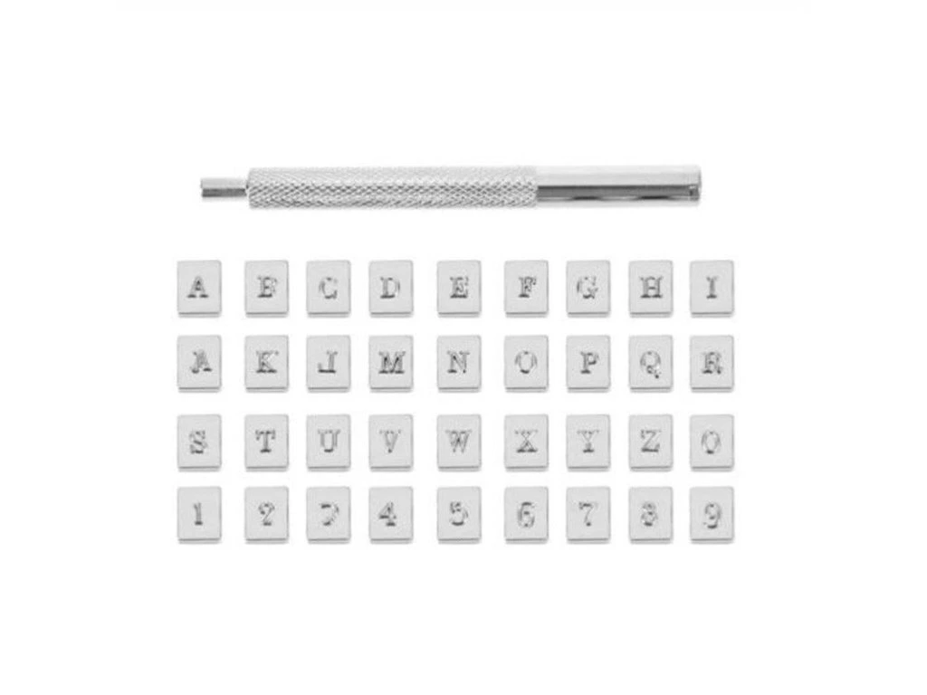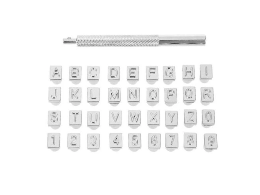 36 ks - Kovové raznice do kůže 6mm - písmena / číslice