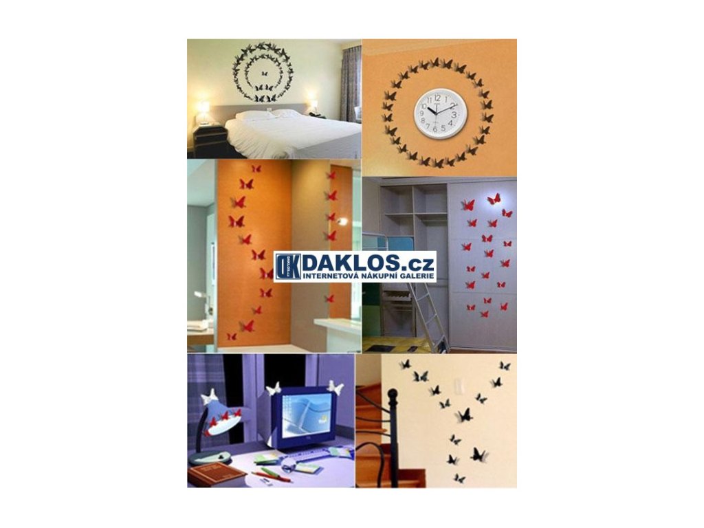 6 kusů - 3D motýli na stěnu - samolepicí / nalepovací - červené