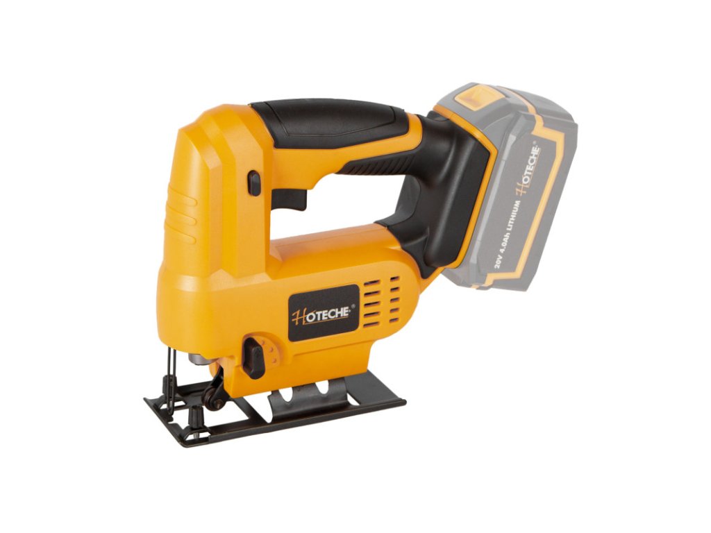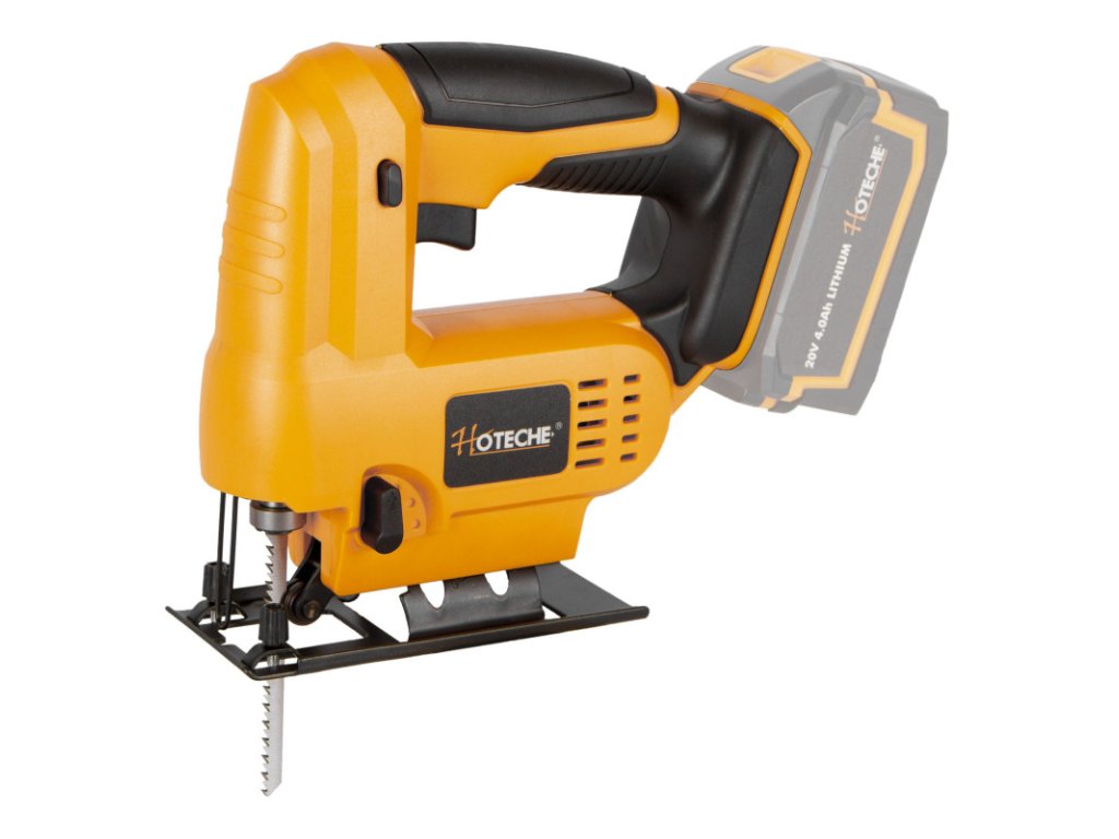 AKUmulátorová přímočará pila (přímočarka) od značky Hoteche napájena akumulátorem 20 V.