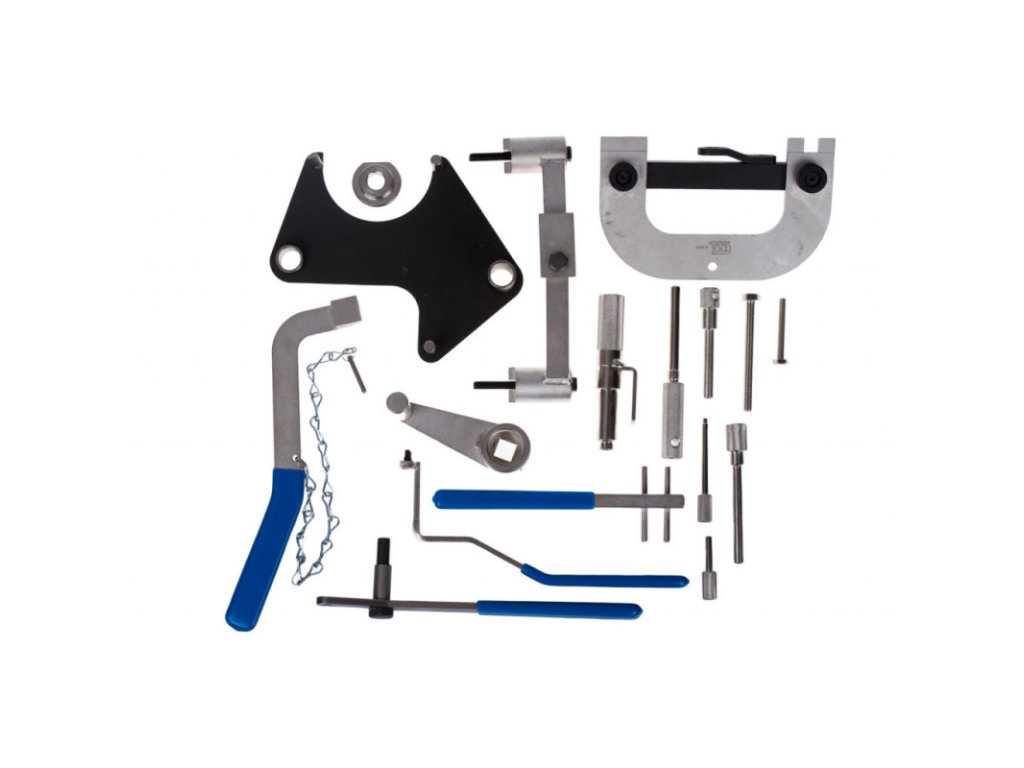 - Tato obsáhlá sada přípravků umožňuje správné nastavení časování motorů Renault při jejich servisování.
