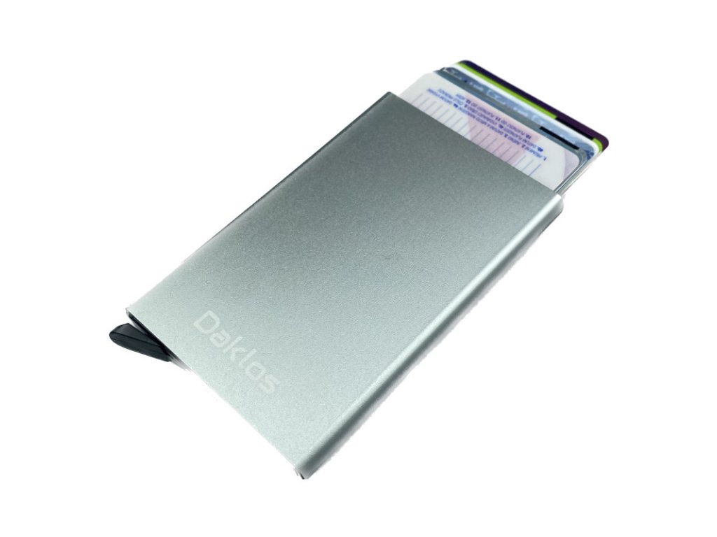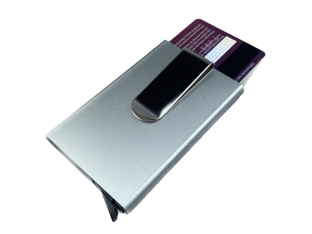 Bezpečnostní RFID kovové pouzdro a peněženka na karty a doklady až pro 8 karet se sponou na peníze - Stříbrná