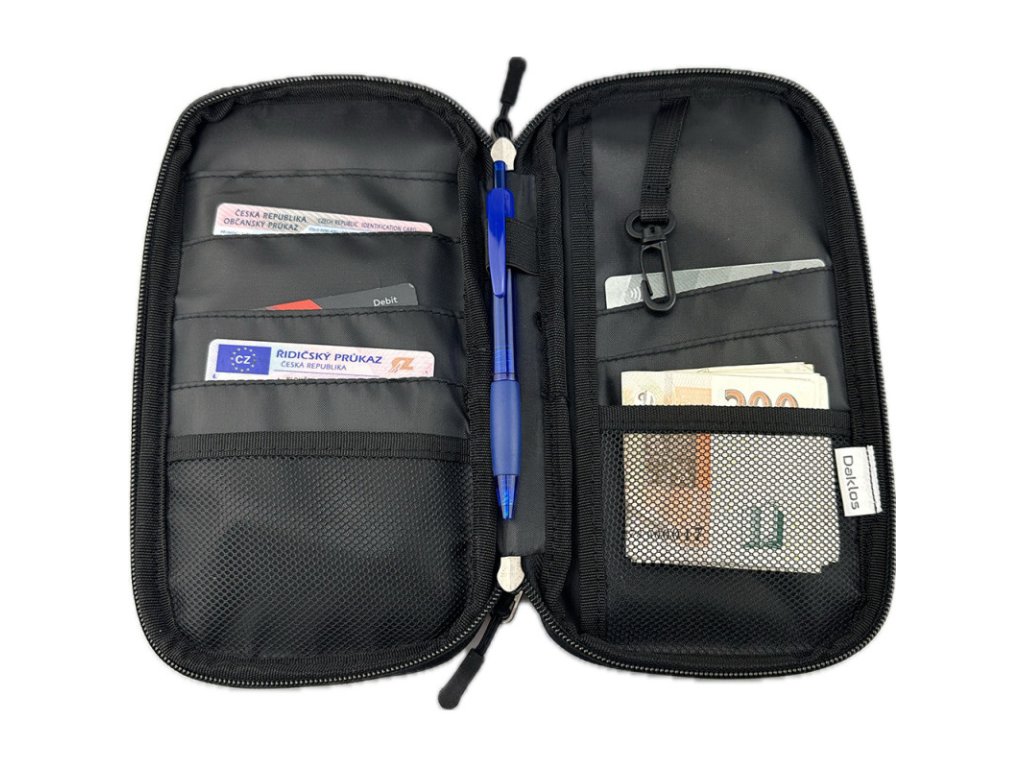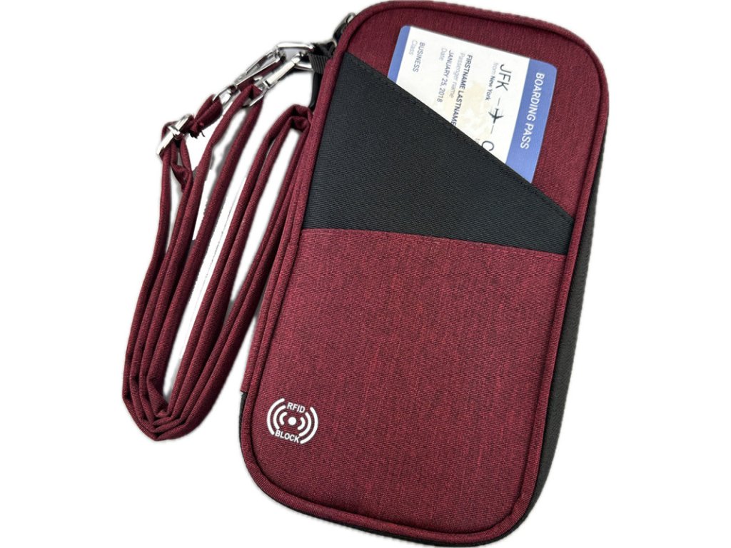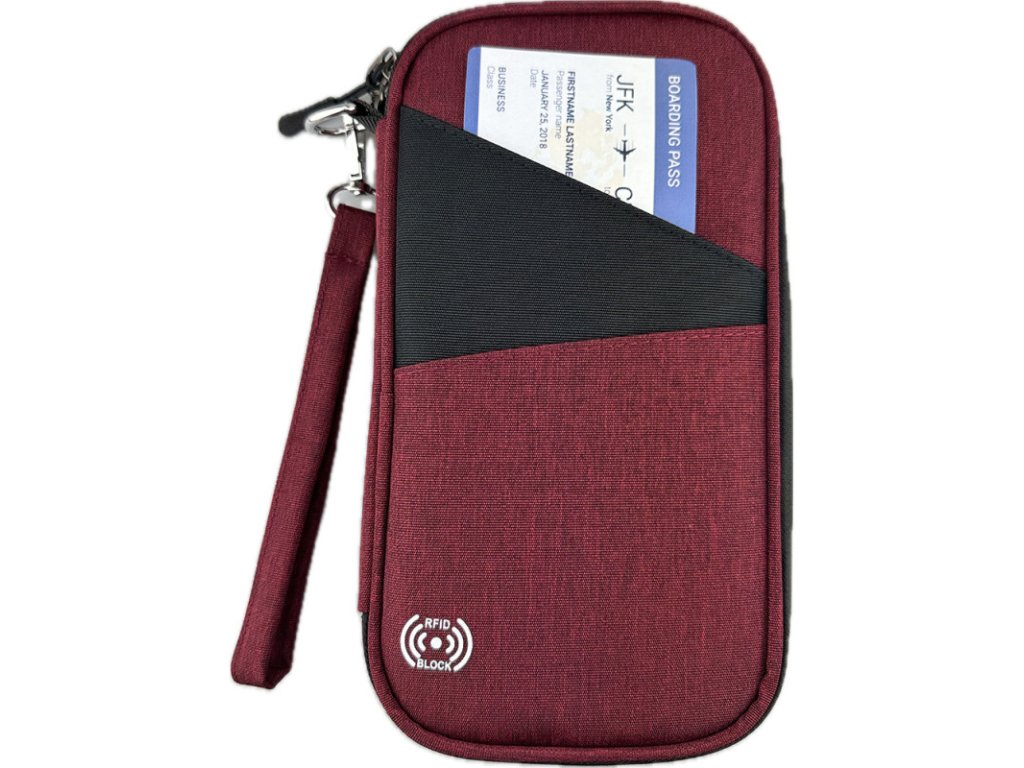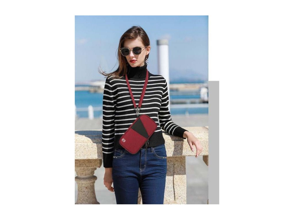 Bezpečnostní RFID pouzdro na pas a letenku, cestovní peněženka - červená s černým detailem