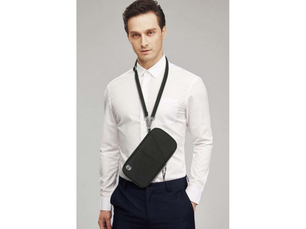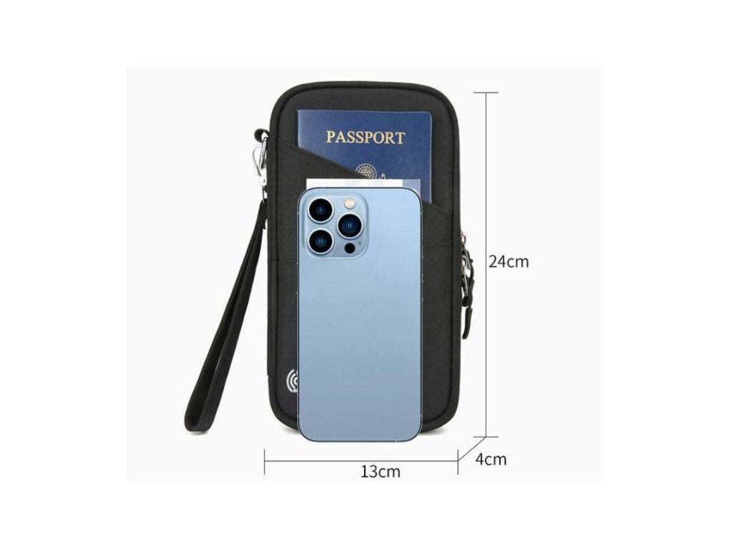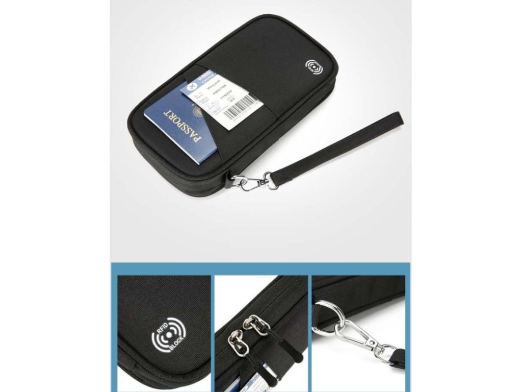 Bezpečnostní RFID pouzdro na pas a letenku, cestovní peněženka s dvěmi předními kapsami - černá