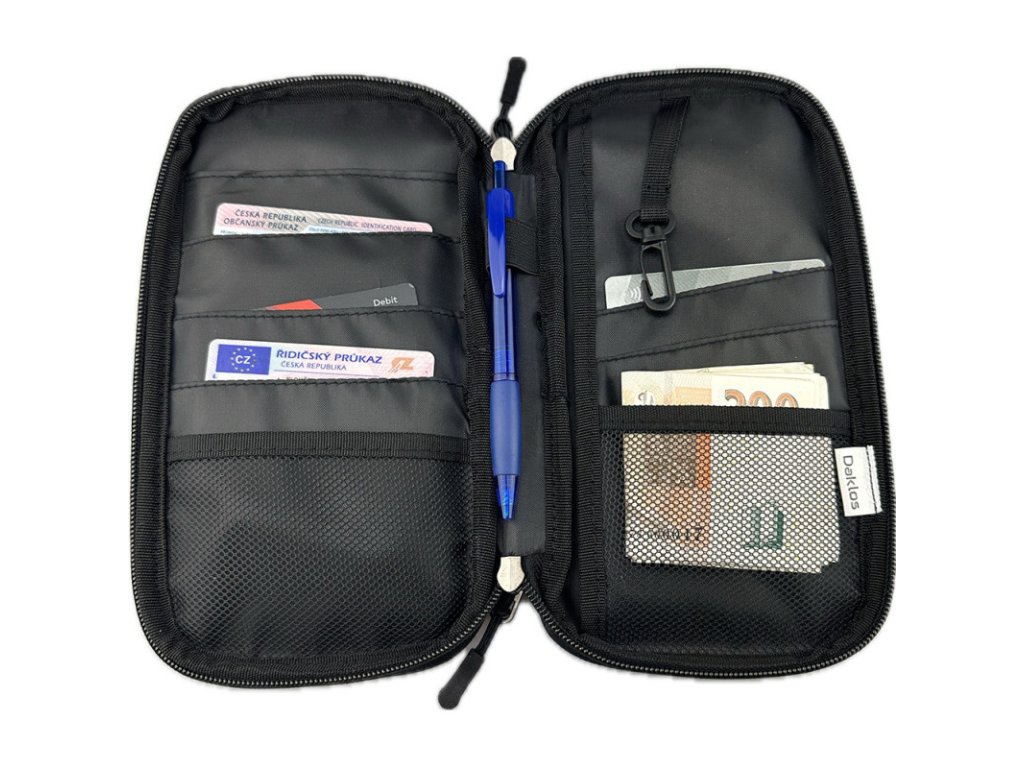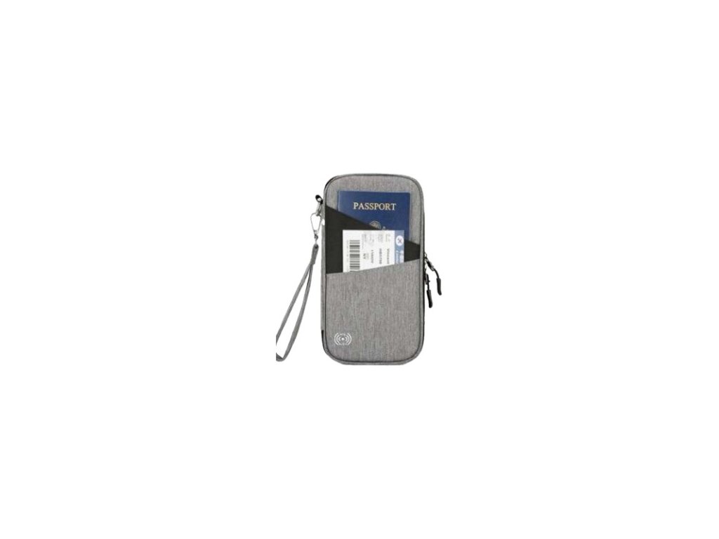 Bezpečnostní RFID pouzdro na pas a letenku, cestovní peněženka - šedá s černým detailem