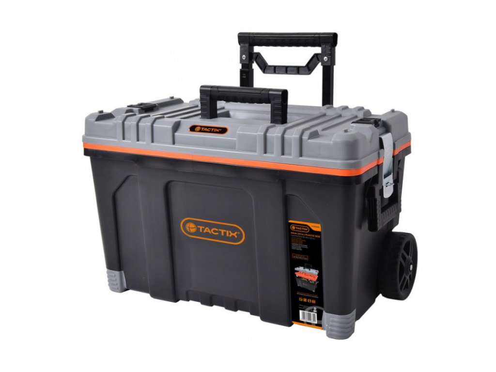 Plastový box vhodný pro uskladnění nářadí a pro jeho snadný přesun. Pro přesun je box vybavený 3-mi madly a teleskopickou rukojetí až do výšky 90 cm.