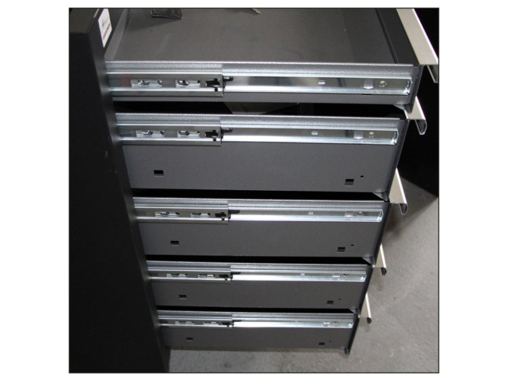 - 5 zásuvek - 1x úzká, 4x široká pro přehledné uložení nářadí, dílů a spotřebního materiálu.