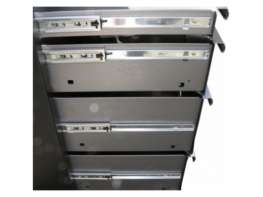 - 4 zásuvky - 1x úzká, 1x střední a 2x široká pro přehledné uložení nářadí, dílů a spotřebního materiálu.