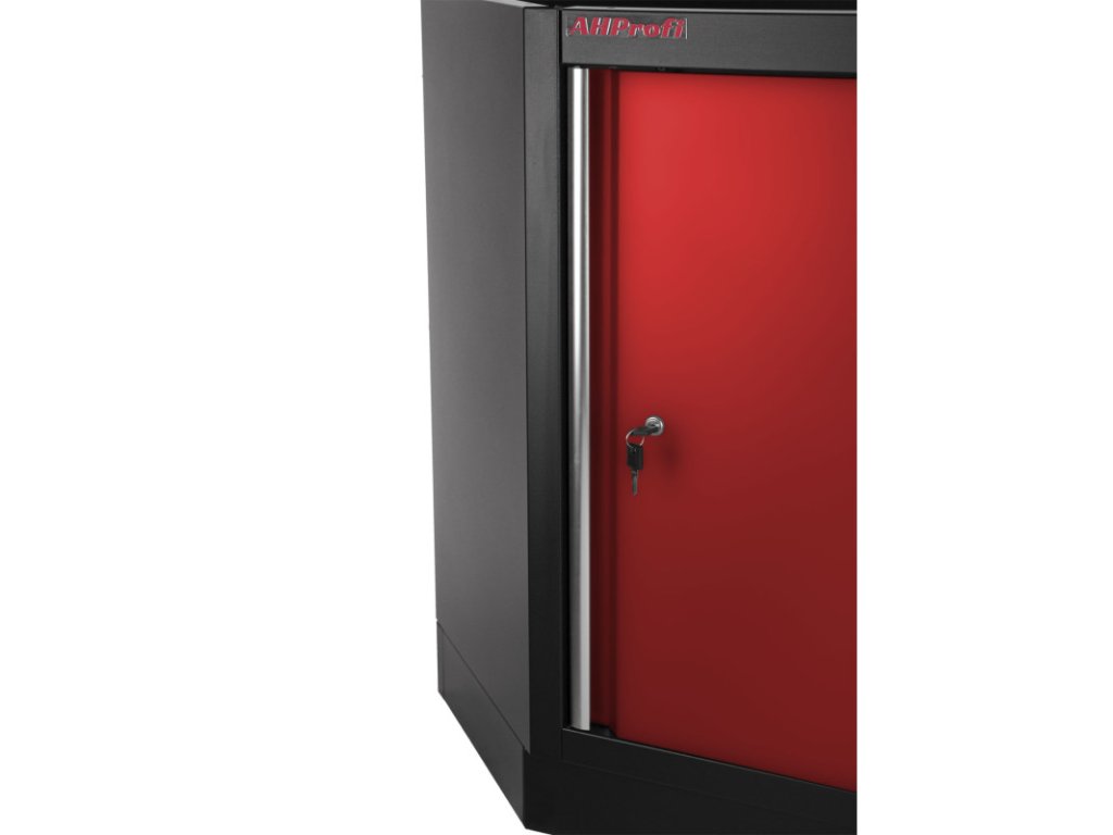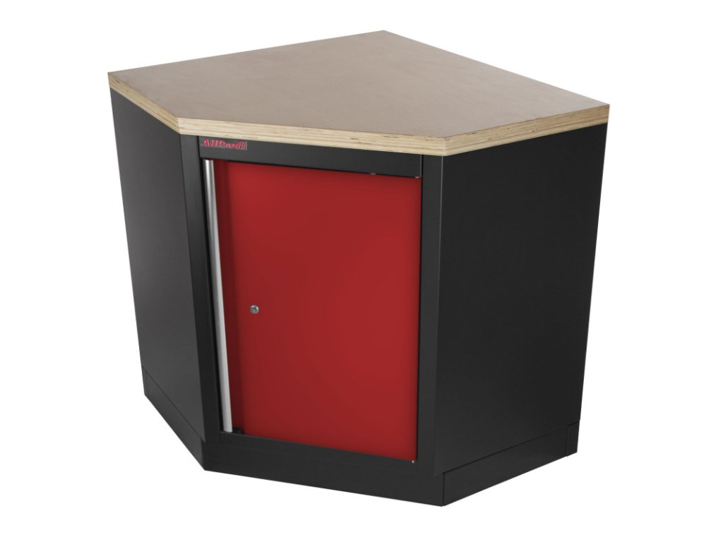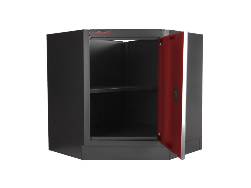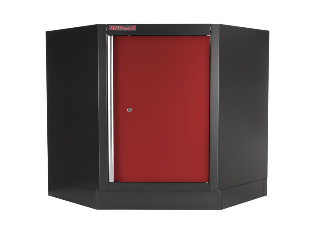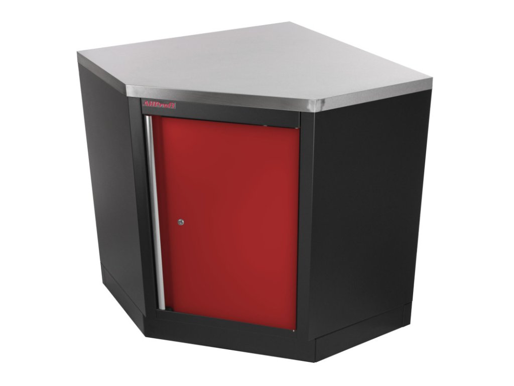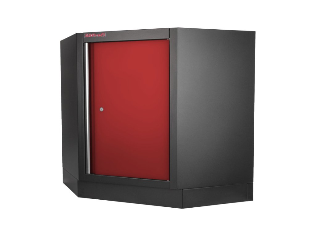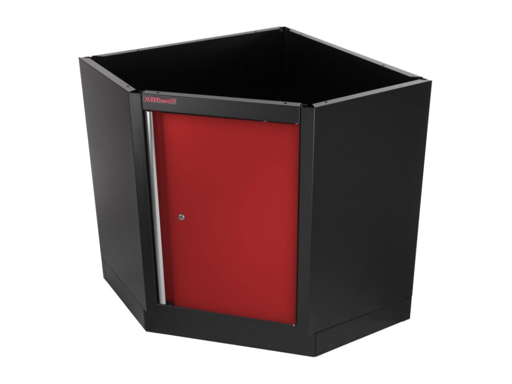 Celokovová rohová PROFI RED dílenská jednokřídlá skříňka. Skříňka je vhodná do profesionálních servisů, dílen, ale také do garáží pro uskladnění širokého sortimentu zboží i ručního nářadí, na které se pak nepráší a snáze se udrží přehledně uklizené na správném místě. Tato skříňka a potažmo celá rohová sestava Vám dává možnost maximálně využít prostor v garáži, domácí dílně i profi dílně a navíc parádně vypadá.