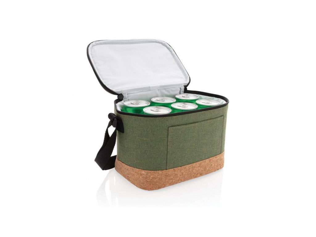 Cestovní chladící taška na potraviny nebo až 6 plechovek nápojů. Vybavena ramenním popruhem a přední kapsou na drobnosti. Minimalistický design s korkovým detailem.