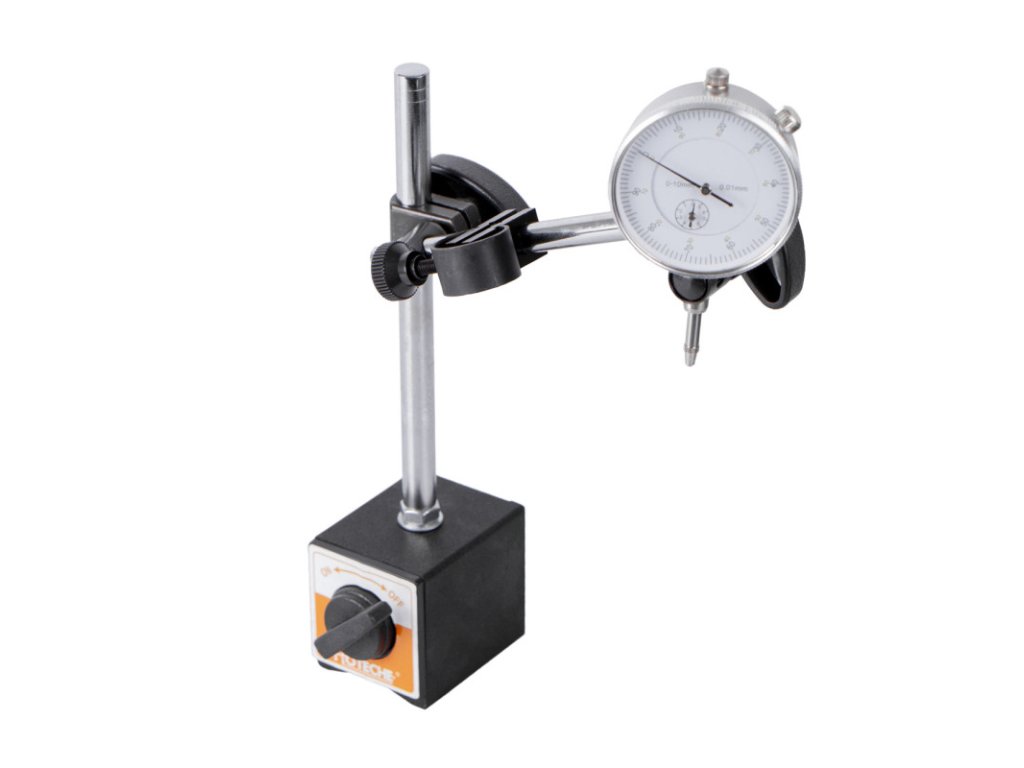 Číselníkový úchylkoměr s magnetickým stojanem je přesný měřicí nástroj pro kontrolu odchylek a přesné nastavení součástí.