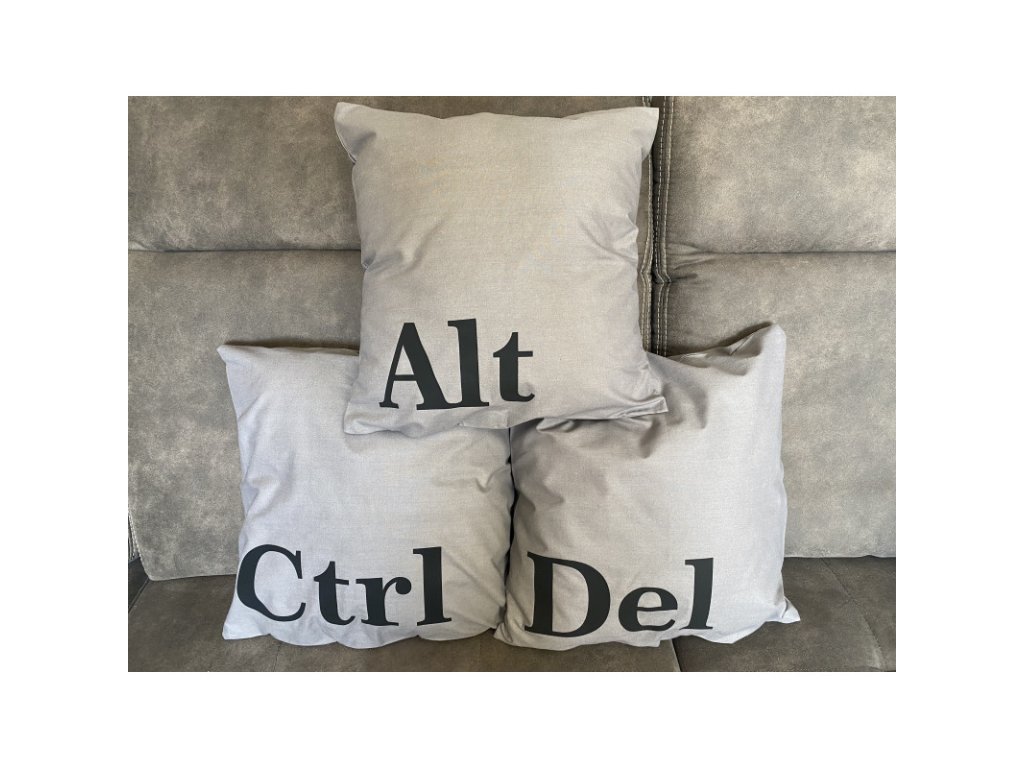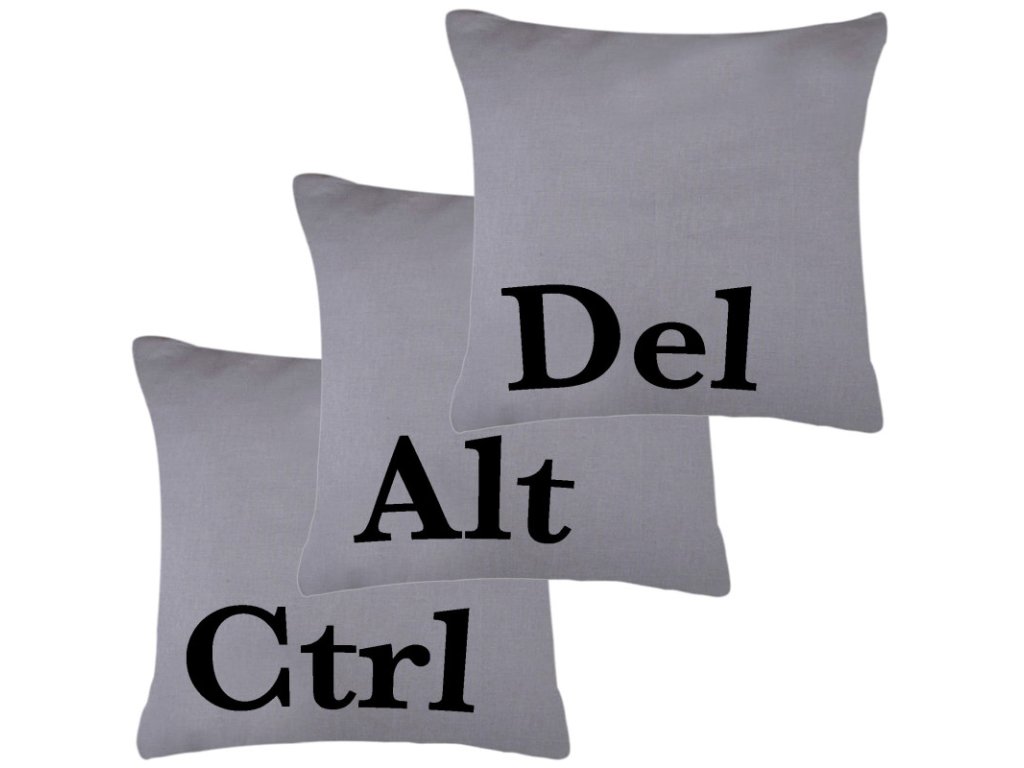 Ctrl Alt Del polštáře - 40 cm x 40 cm - tmavě šedý set 3ks