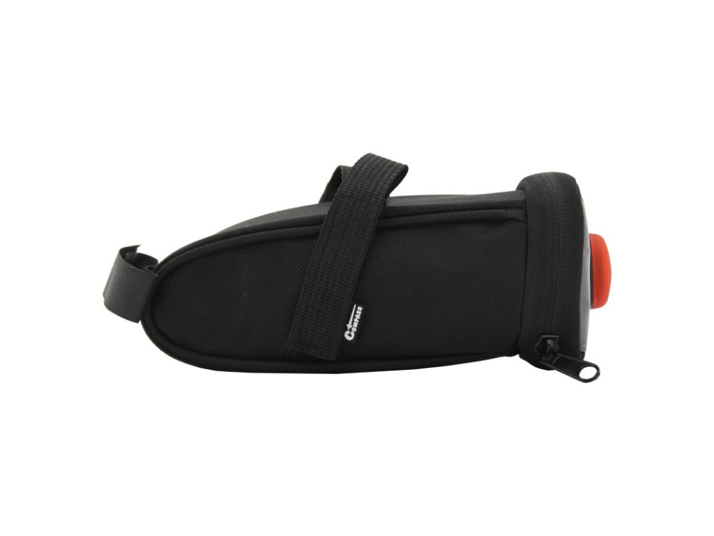 Na vrchní části jsou umístěny nastavitelné přezky pro jednoduché upnutí k různým konstrukcím sedel a přední část lze přichytit k sedlové tyči.