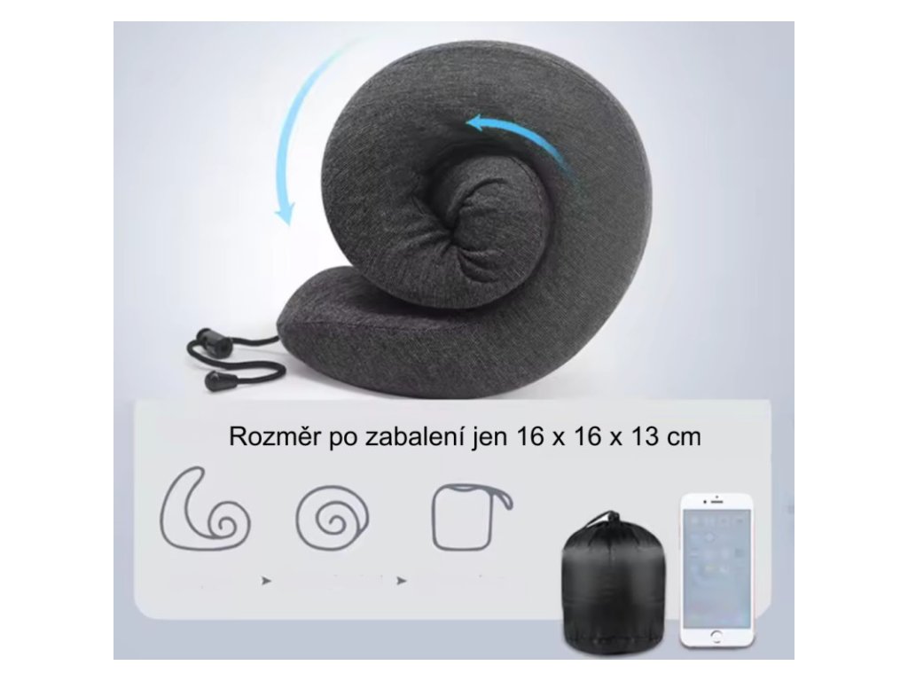 DAKLOS Airdo Smoke cestovní polštář za krk s průduchy z paměťové pěny s maskou a špunty do uší - šedý