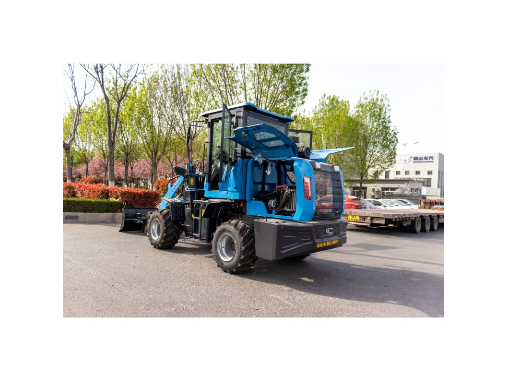 Stabilitu zajišťuje pevná náprava s kvalitními pneumatikami. Palivová nádrž s kapacitou 65 litrů umožňuje dlouhý provoz. S kompaktním rozměrem 5360 × 1800 × 2750 mm a minimálním poloměrem otáčení pouhých 4,4 metru je stroj velmi obratný a snadno ovladatelný.