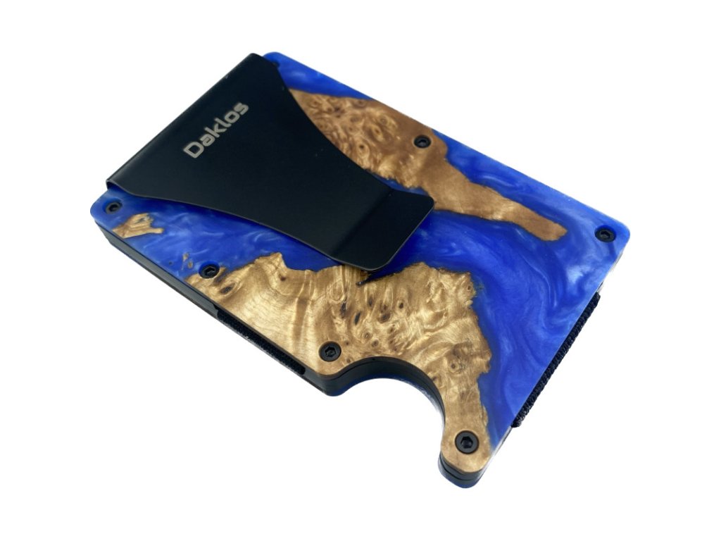 DAKLOS Woodlos bezpečnostní RFID dřevěná mini peněženka s klipem - modrá - 101383