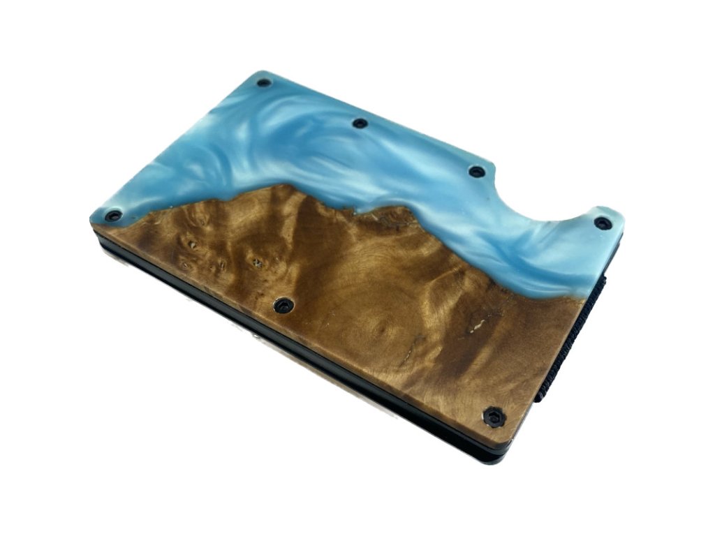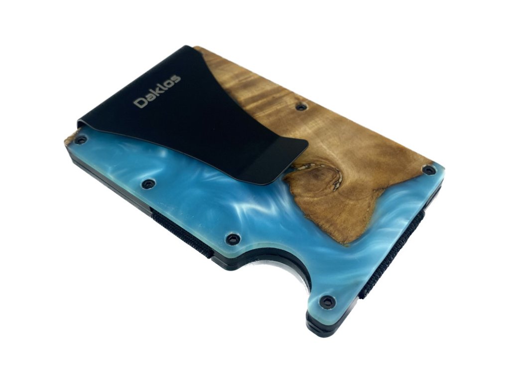 DAKLOS Woodlos bezpečnostní RFID dřevěná mini peněženka s klipem - světle modrá - 101373