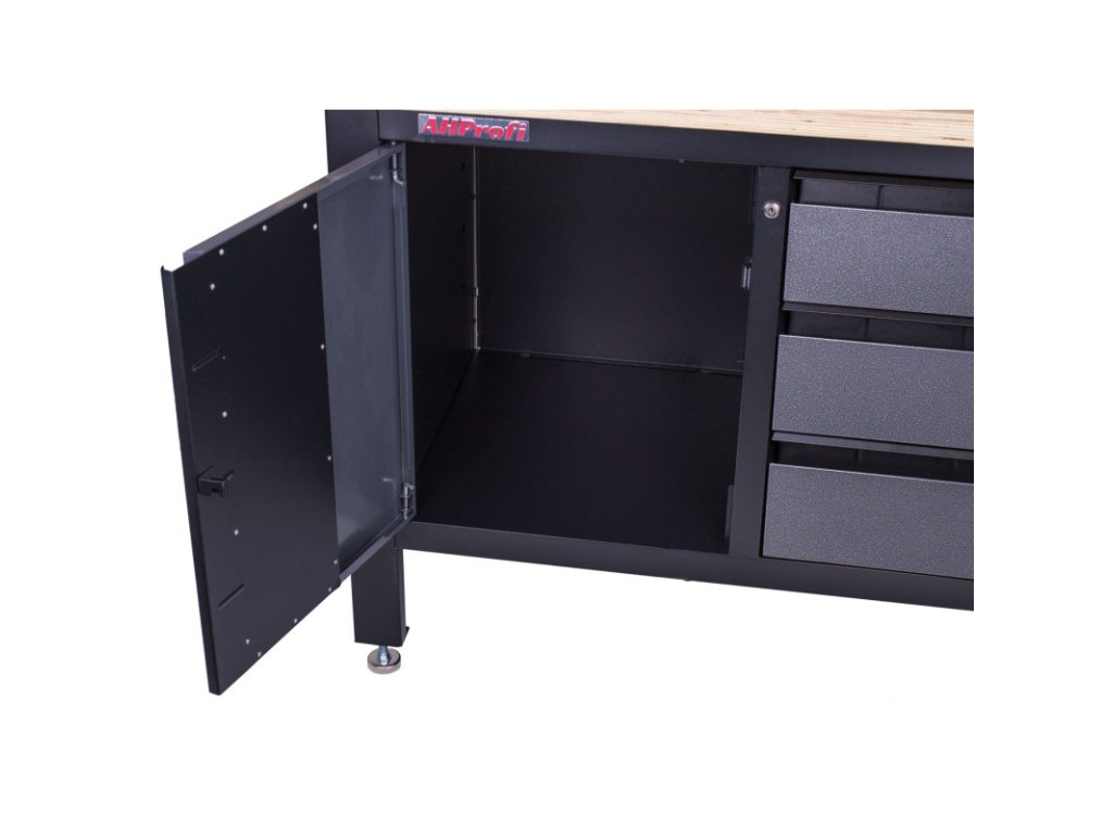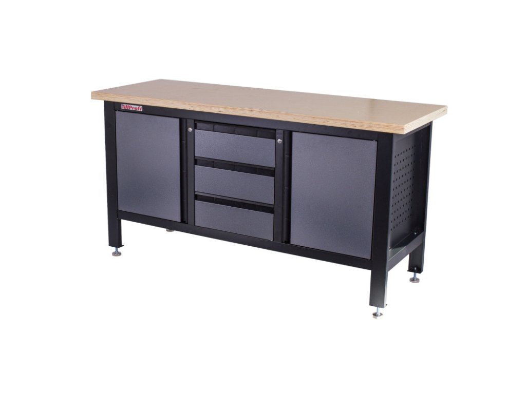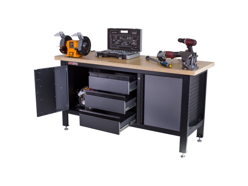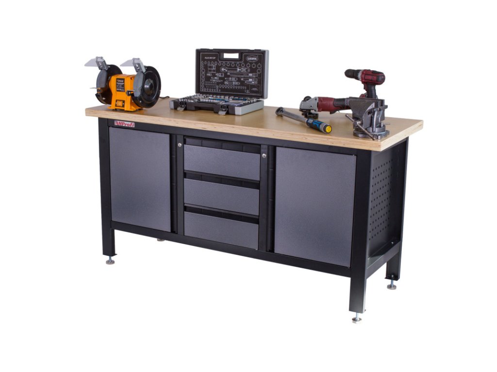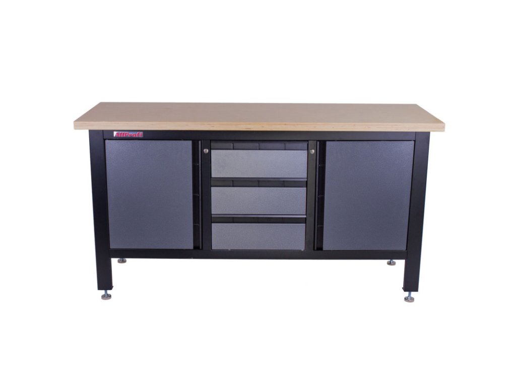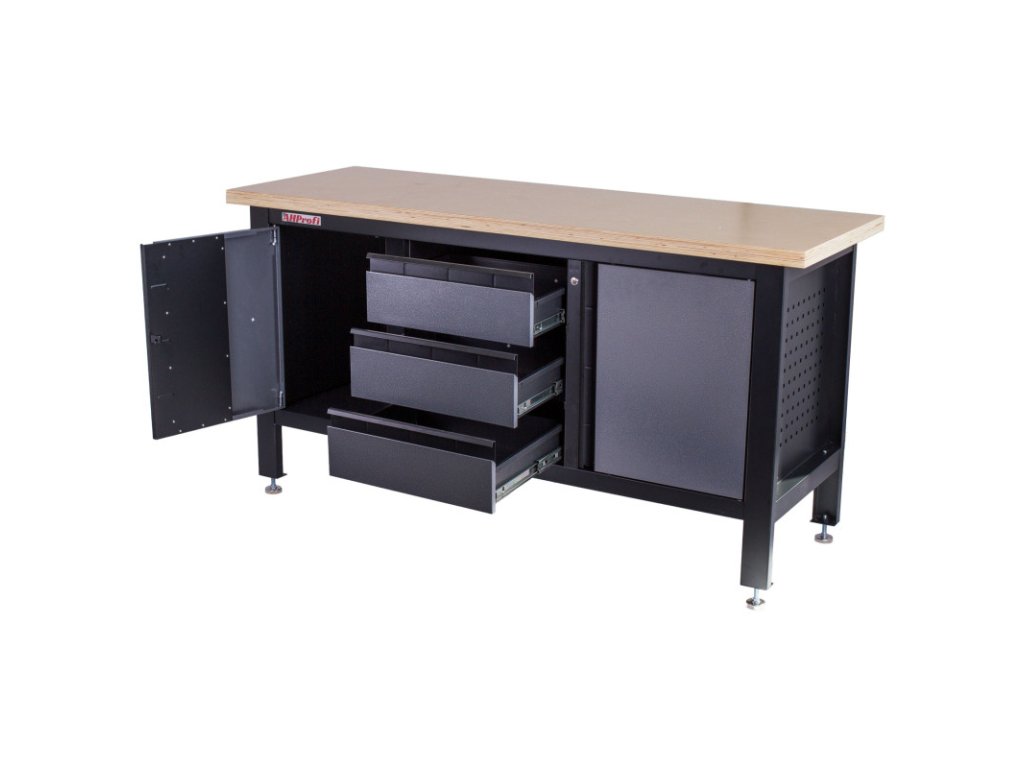 Profesionální kovový ponk vhodný pro nejnáročnější použití. Nosnost pracovního stolu je 300 kg. Je vybavený dřevěnou pracovní deskou o rozměrech 1690 x 600 mm, dvě skříňky a 3 šuplíky.