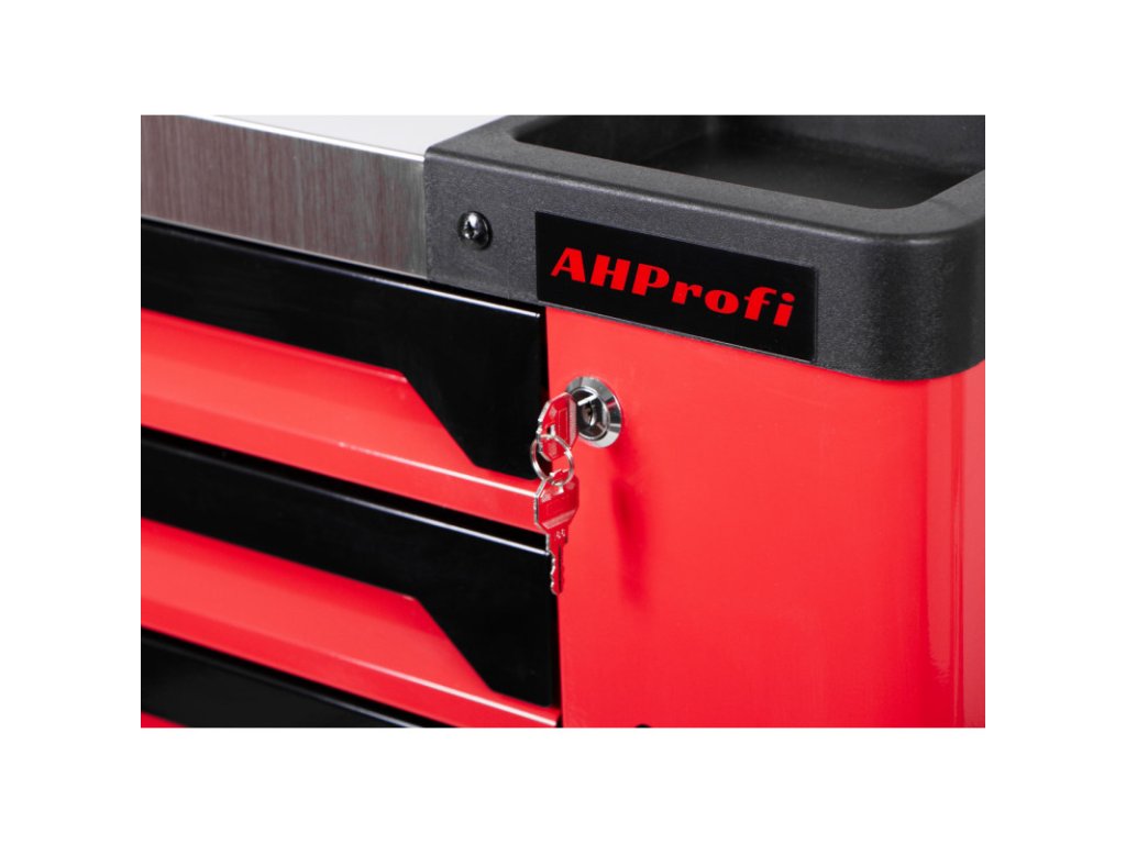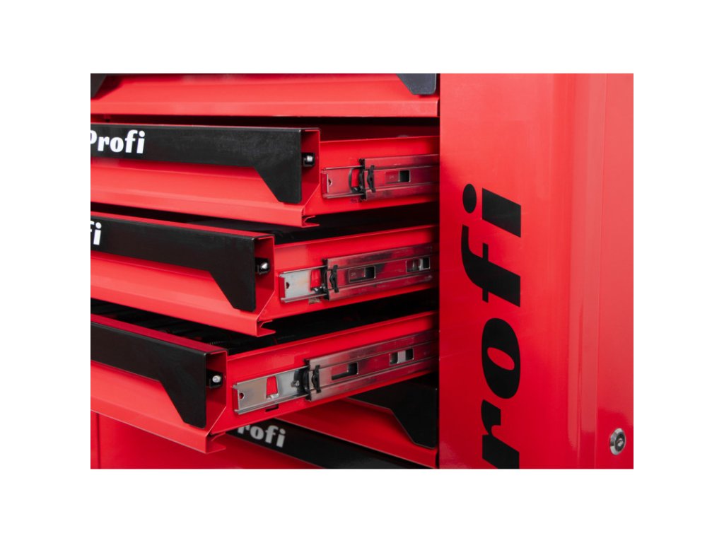 Mobilní celokovová konstrukce zajišťuje vysokou nosnost a dlouhou životnost. Vozík má 7 zásuvek s kuličkovými pojezdy pro hladké vysouvání.