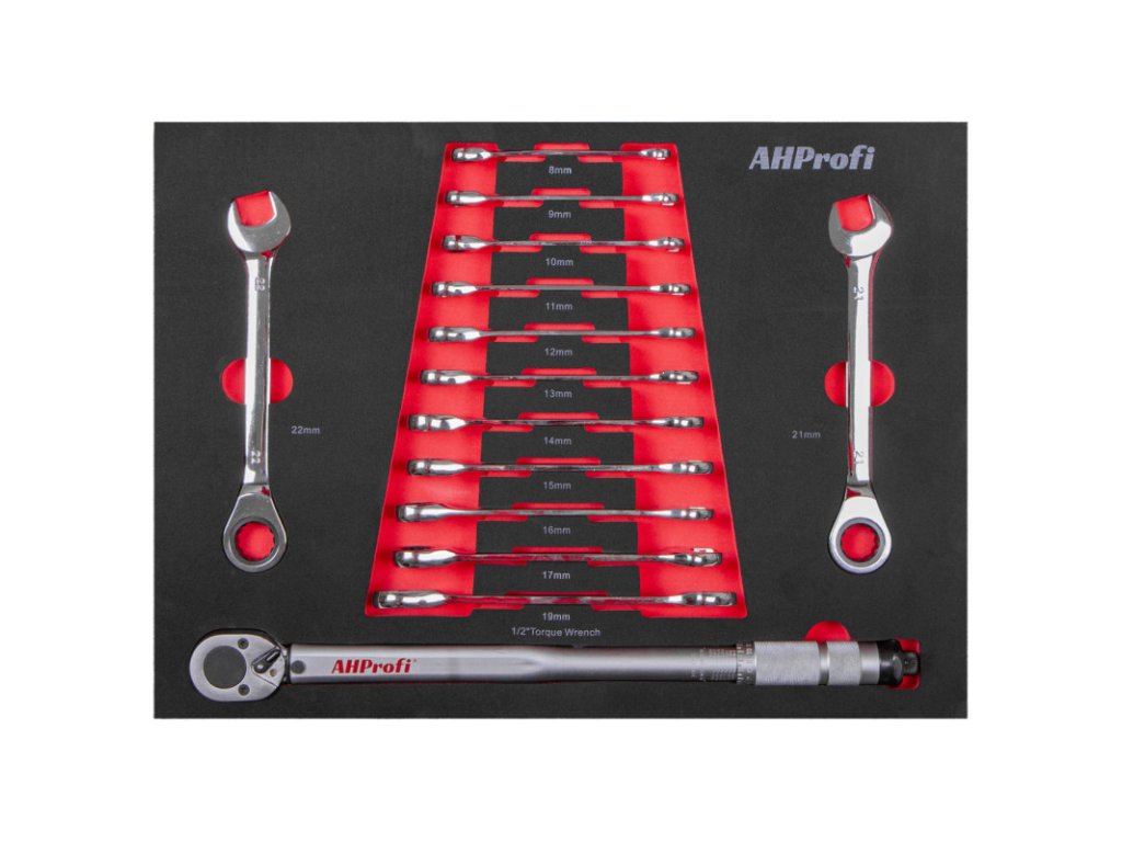 | Ráčnové klíče: 8, 9, 10, 11, 12, 13, 14, 15, 16, 17, 19, 21, 22 mm | |