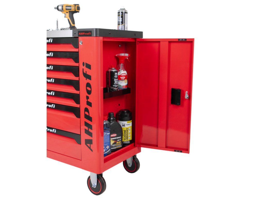 Díky robustní konstrukci, uzamykatelným zásuvkám a snadné mobilitě je tento vozík ideálním pomocníkem v každé dílně.