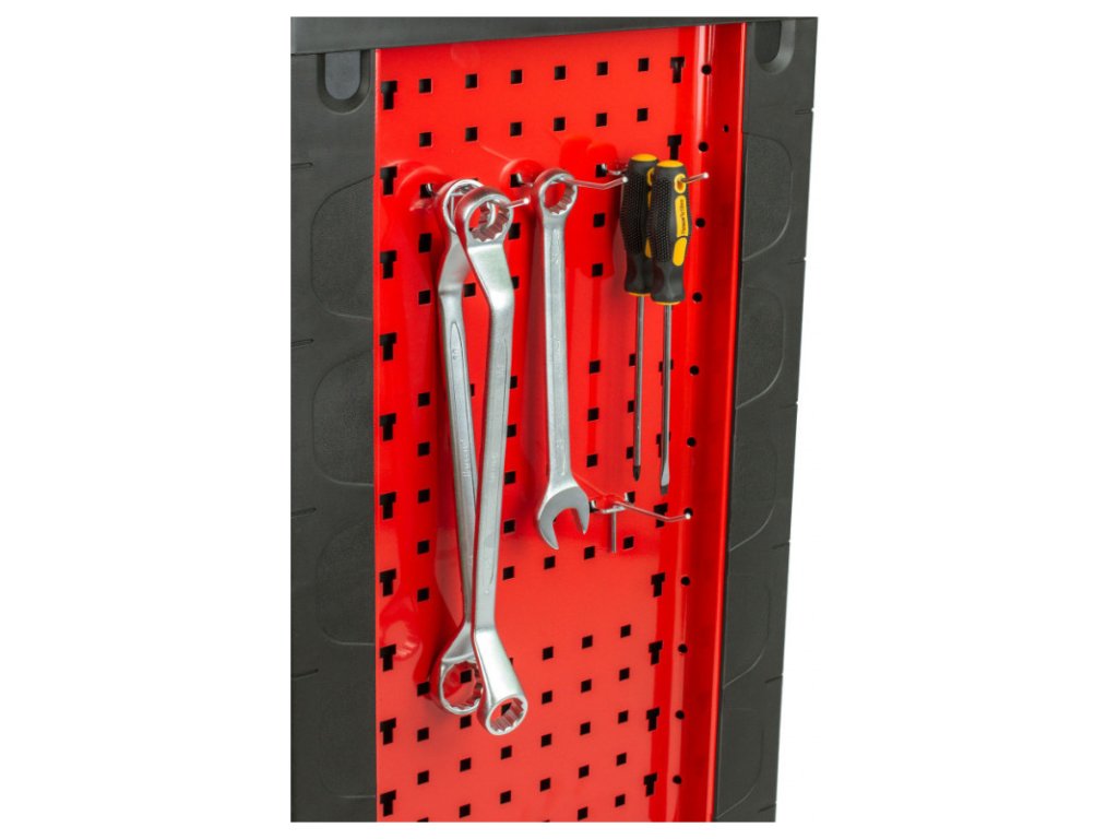 Na obou bocích je pracovní stůl vybaven děrovanou deskou.