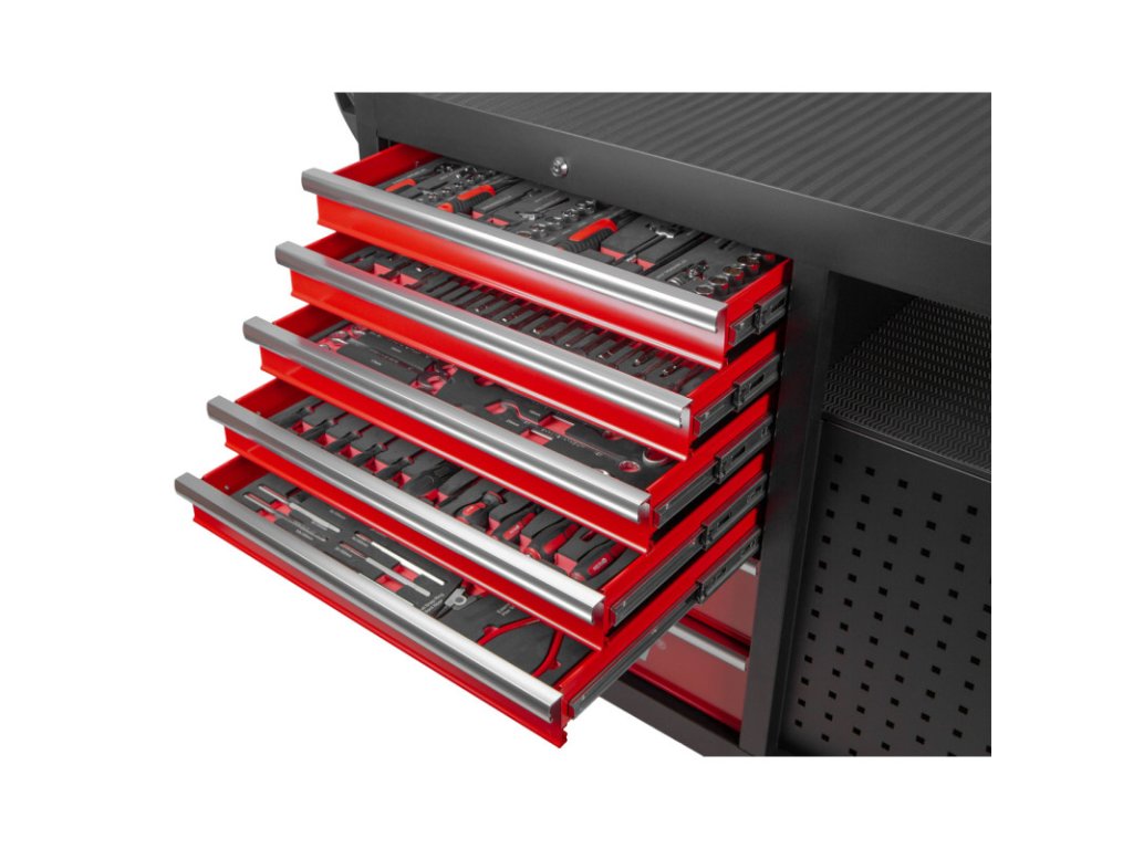 - 10 zásuvek a 2 police pro uložení různě velkých nástrojů.