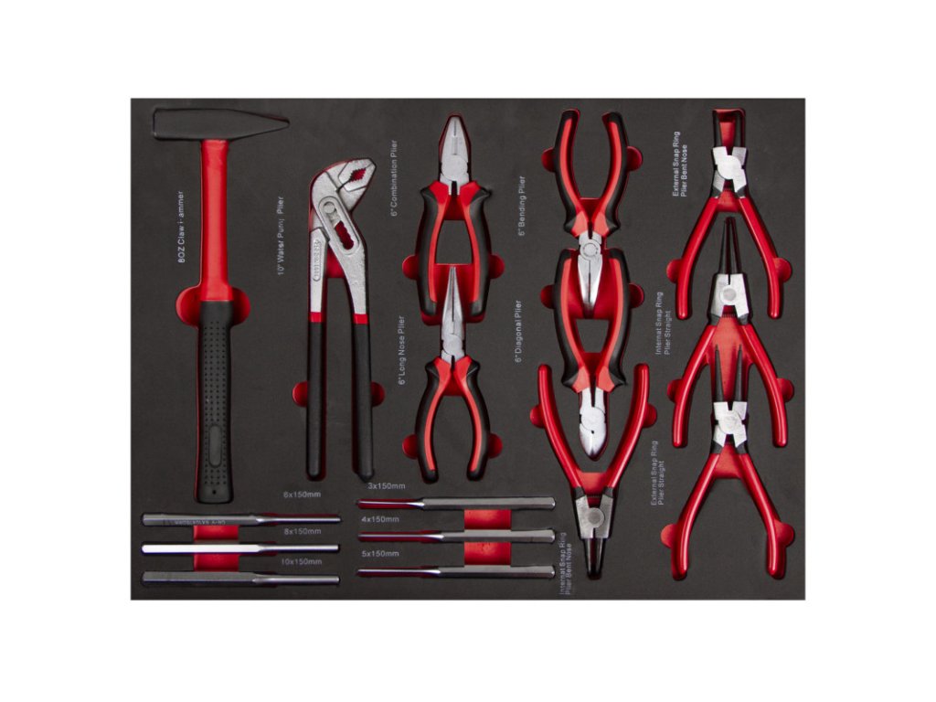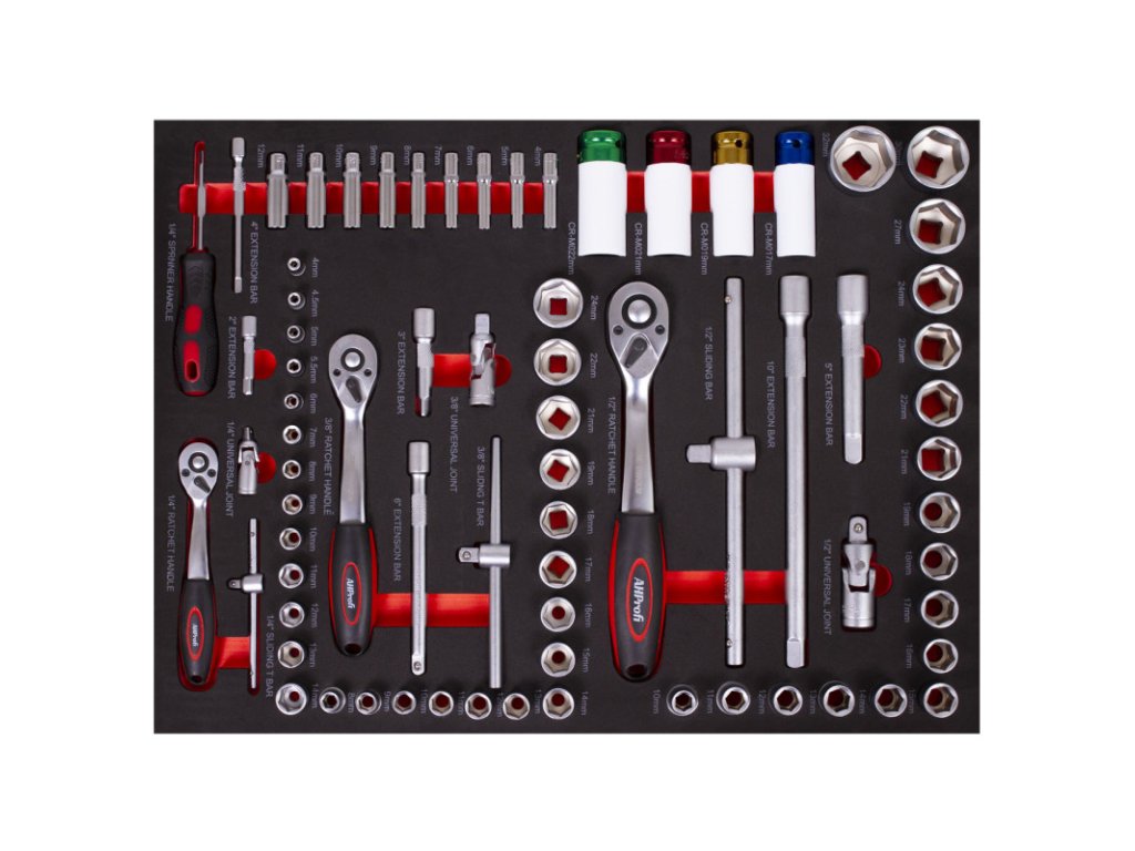 Vozík disponuje 10 zásuvkami různých velikostí, což umožňuje přehledné uspořádání nářadí:
