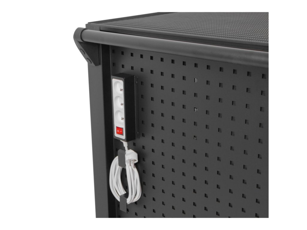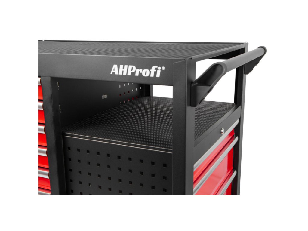 Po 3 stranách vozíku se nacházejí perforované panely, které umožňují zavěšení dalšího nářadí, pomocí různých druhů háčků.