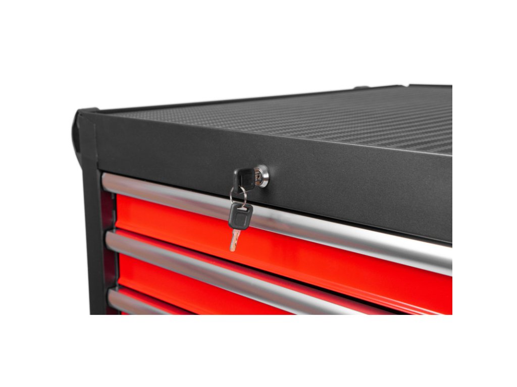 Součástí vozíku jsou také dvě sady zámků s klíči pro zajištění bezpečnosti vašeho nářadí.