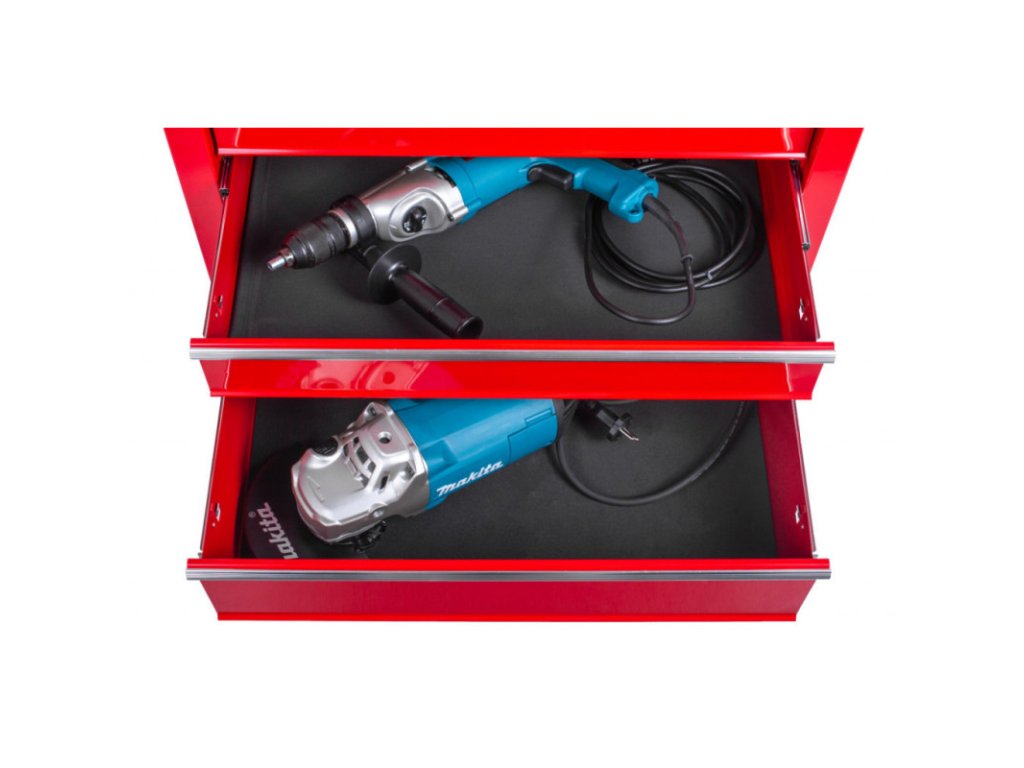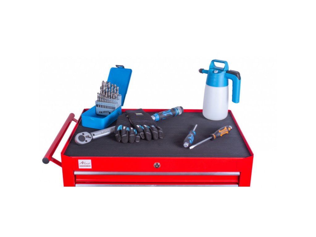 Pracovní plocha je opatřena gumovou podložkou pro zamezení poškození nářadí a vozíku.