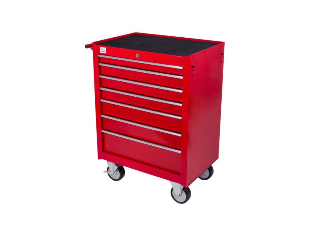 Dílenský vozík je celokovový se sedmi zásuvkami a pracovní plochou.