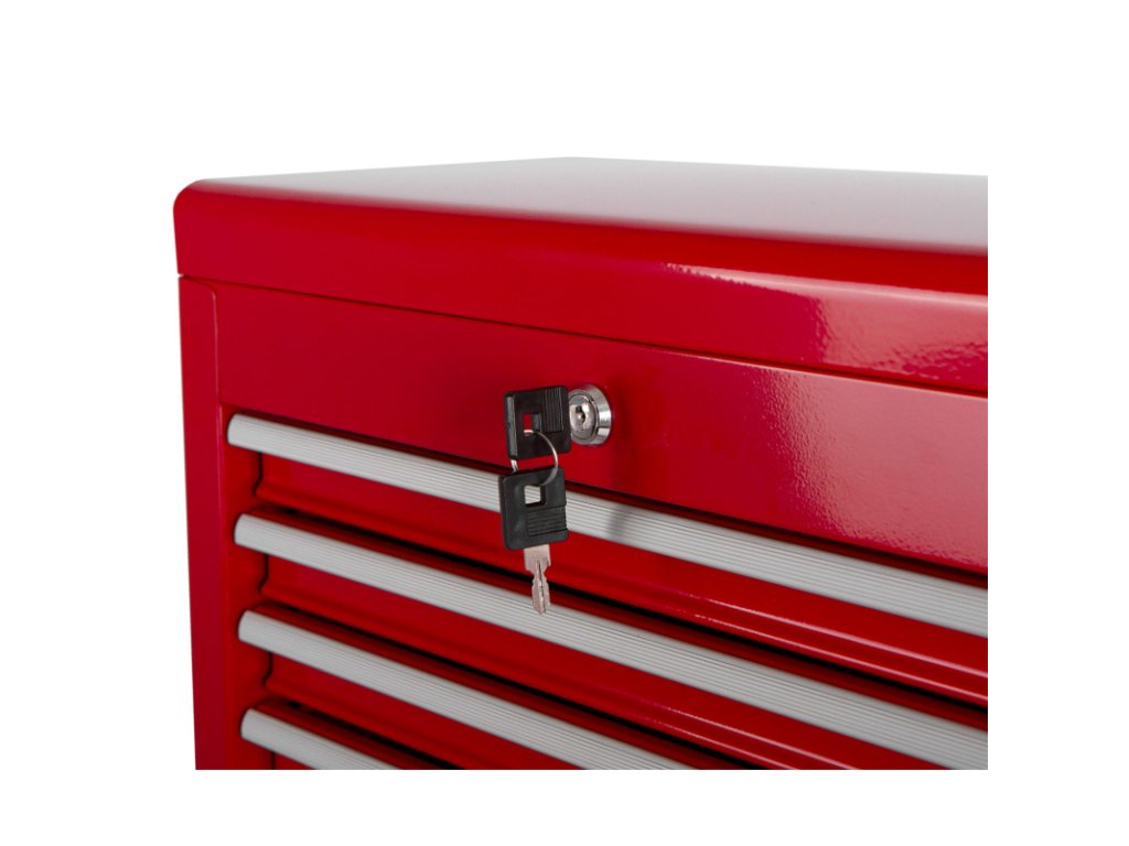 Pro zamezení přístupu nepovolaným osobám k nářadí využijete zámek na přední straně skříňky k uzamknutí horních zásuvek a výklopné skříňky.