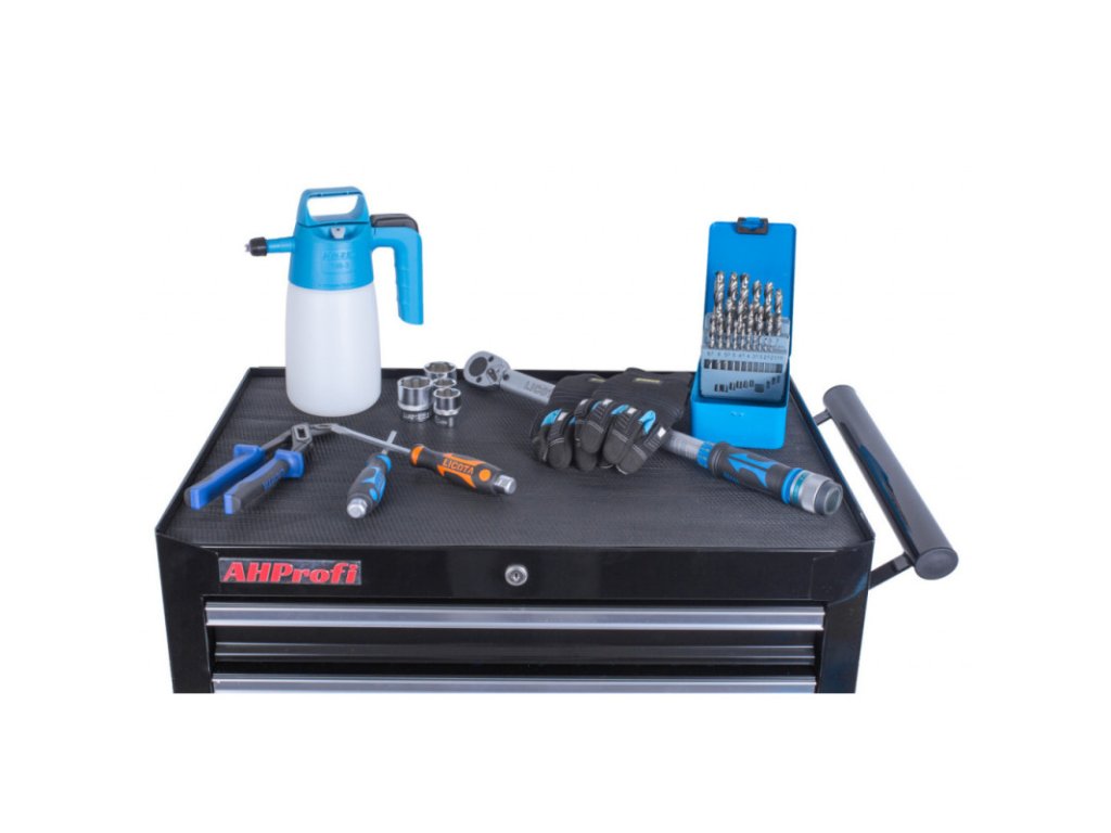 Pracovní plocha je opatřena gumovou podložkou pro zamezení poškození nářadí a vozíku.