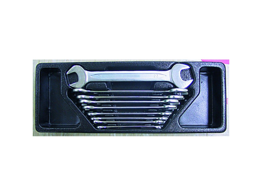 | 9 ks | Ploché klíče: 6 x 7, 8 x 9, 10 x 11,12 x 13,14 x 15, 16 x 17, 18 x 19, 20 x 22, 23 x 24 mm |