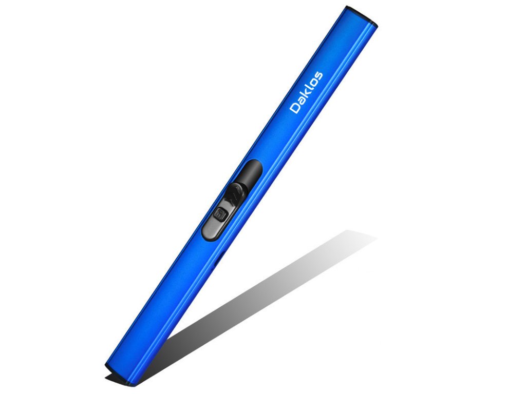 Dlouhý nabíjecí vysouvací plazmový zapalovač na svíčky a krb v dárkové krabičce - modrý