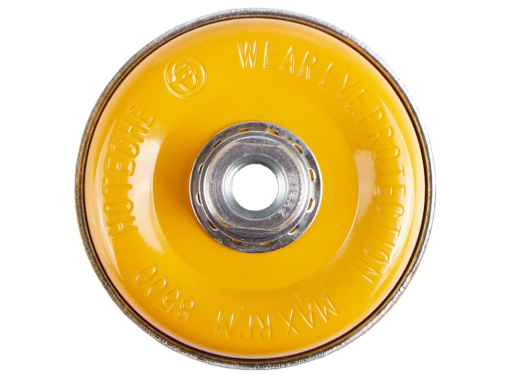 Drátěný čelní kartáč o průměru 100 mm pro odstraňování rzi, barev a laků z kovových předmětů.
