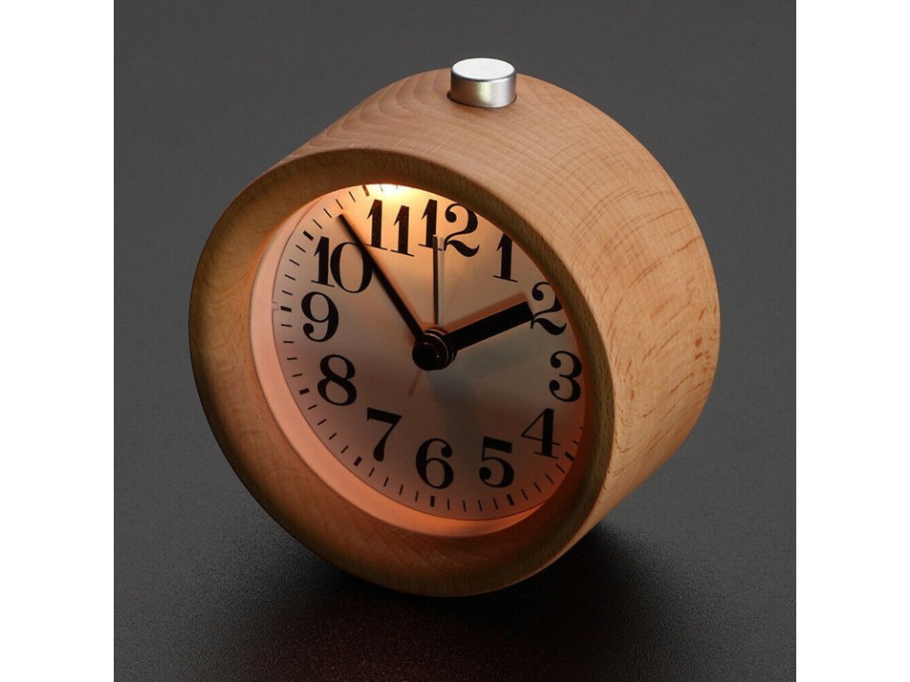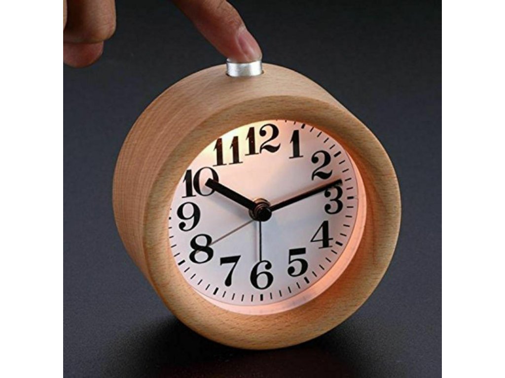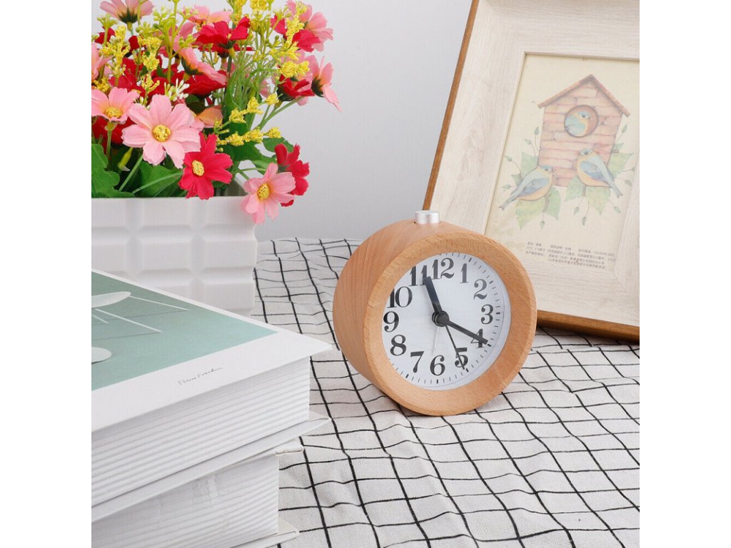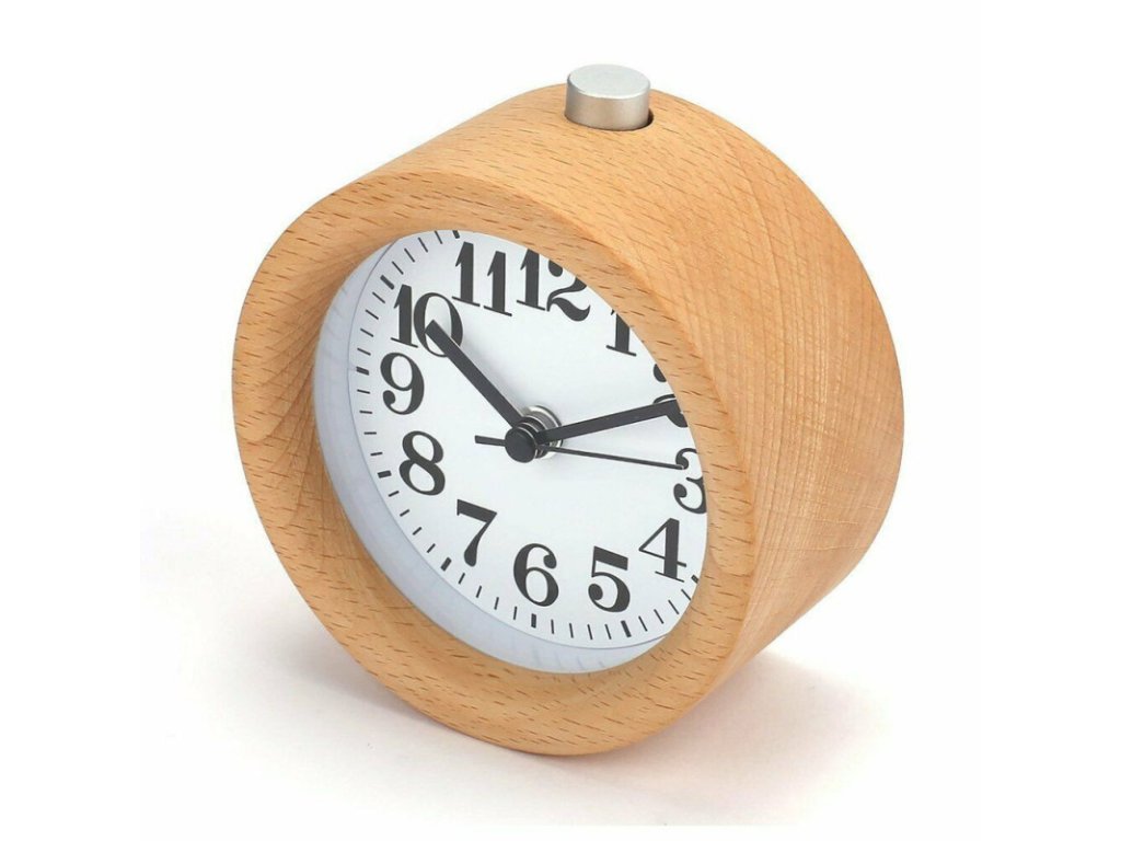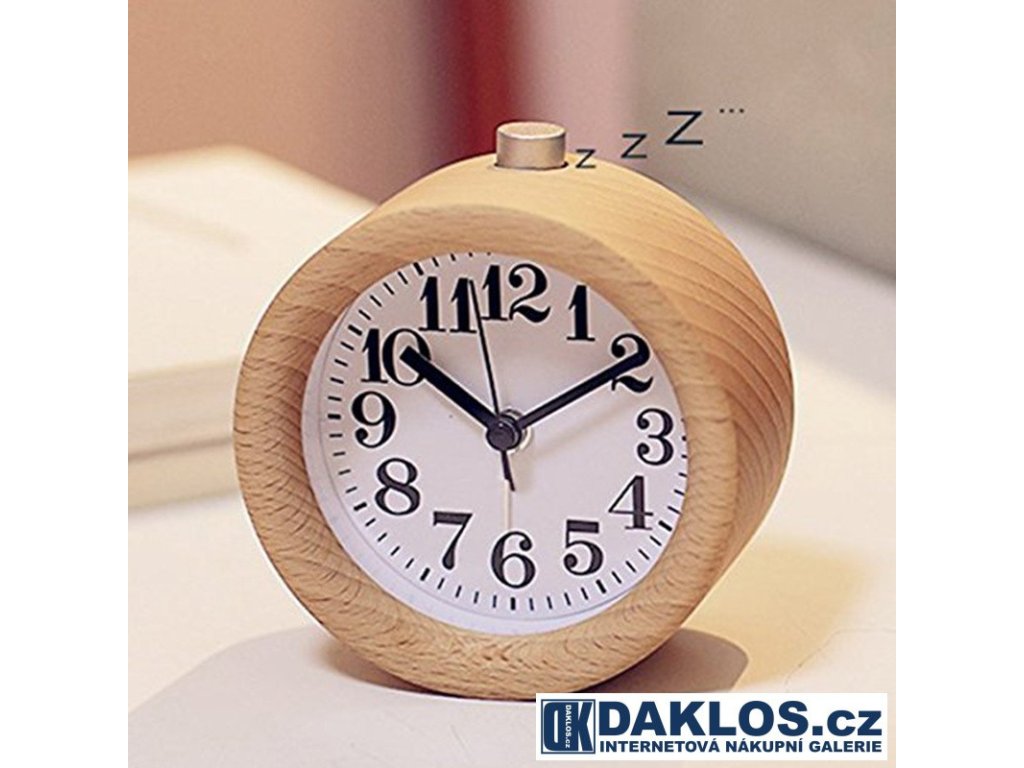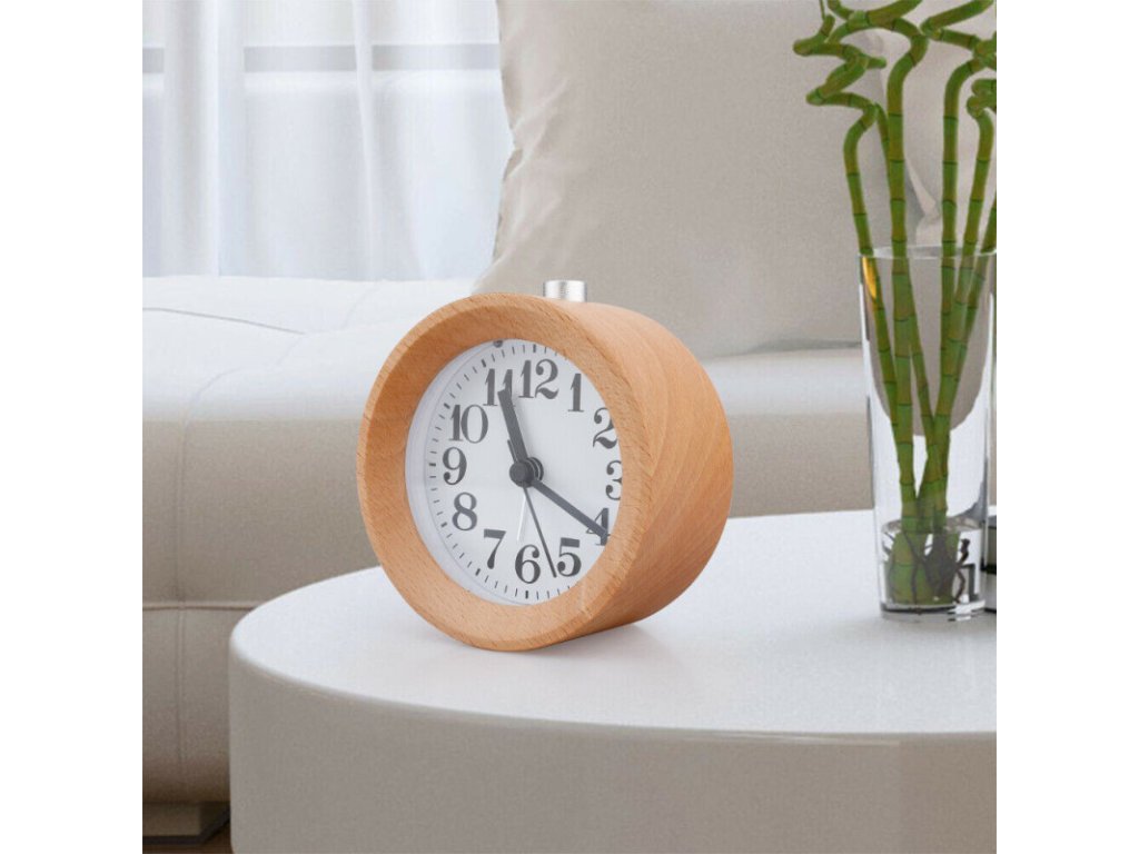 Dřevěný analogový budík / hodiny - kulatý