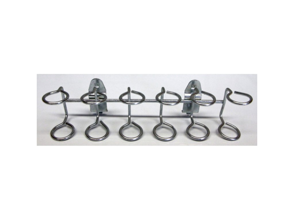 Držák 6 ks šroubováků je určen pro děrované desky s roztečí 18 x 18 mm. Držák šroubováků je velmi praktický. Šroubováky budete mít vždy přehledně a bezpečně vyskládané a po ruce.