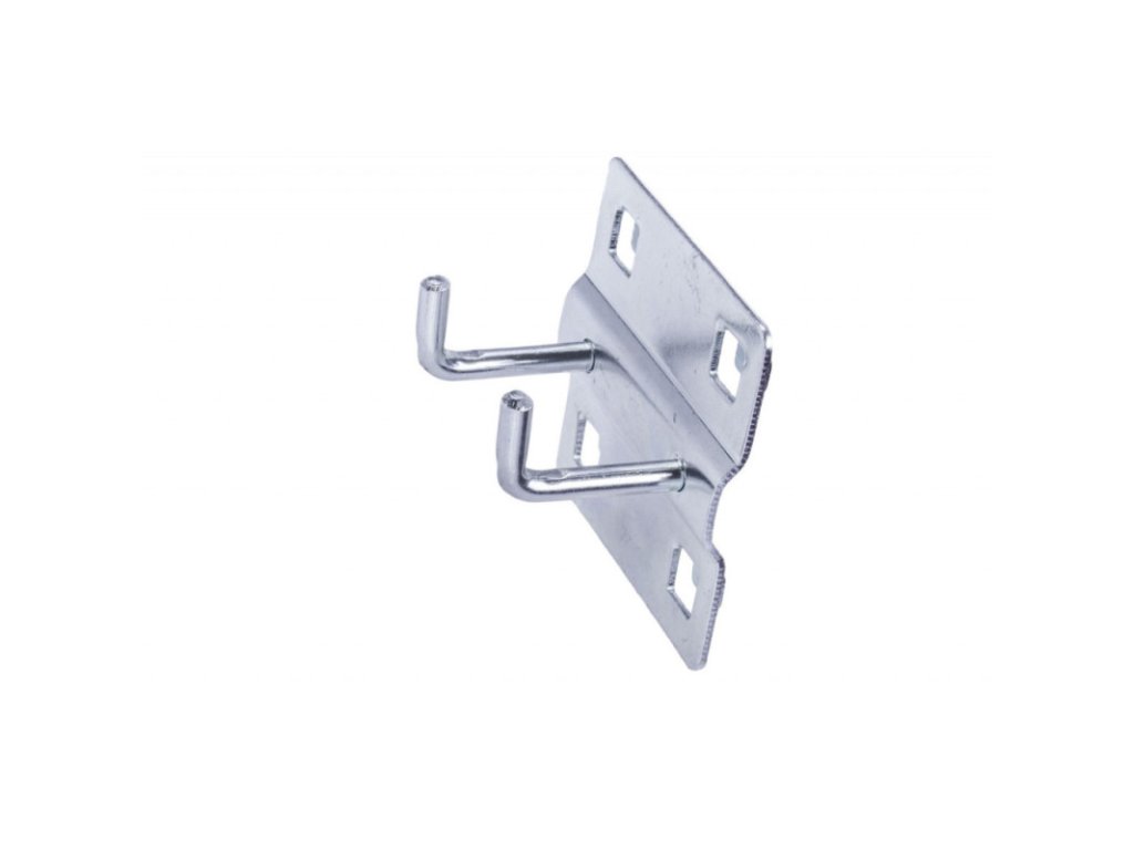 Dvojitý hák dlouhý 35 mm je určen pro děrované desky s roztečí 38 x 38 mm. Připevněním na perforovaný panel lze rozšířit úložný prostor také pro sestavy dílenského nábytku, dílenské vozíky s nářadím i bez nářadí, pracovní stoly i policové regály.