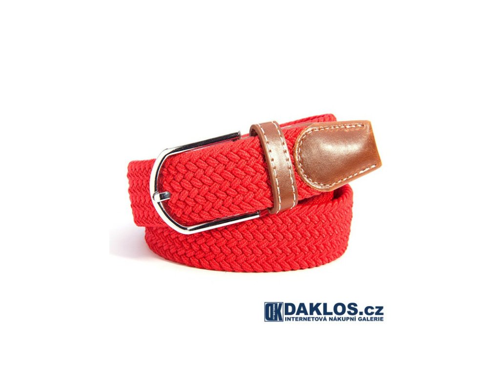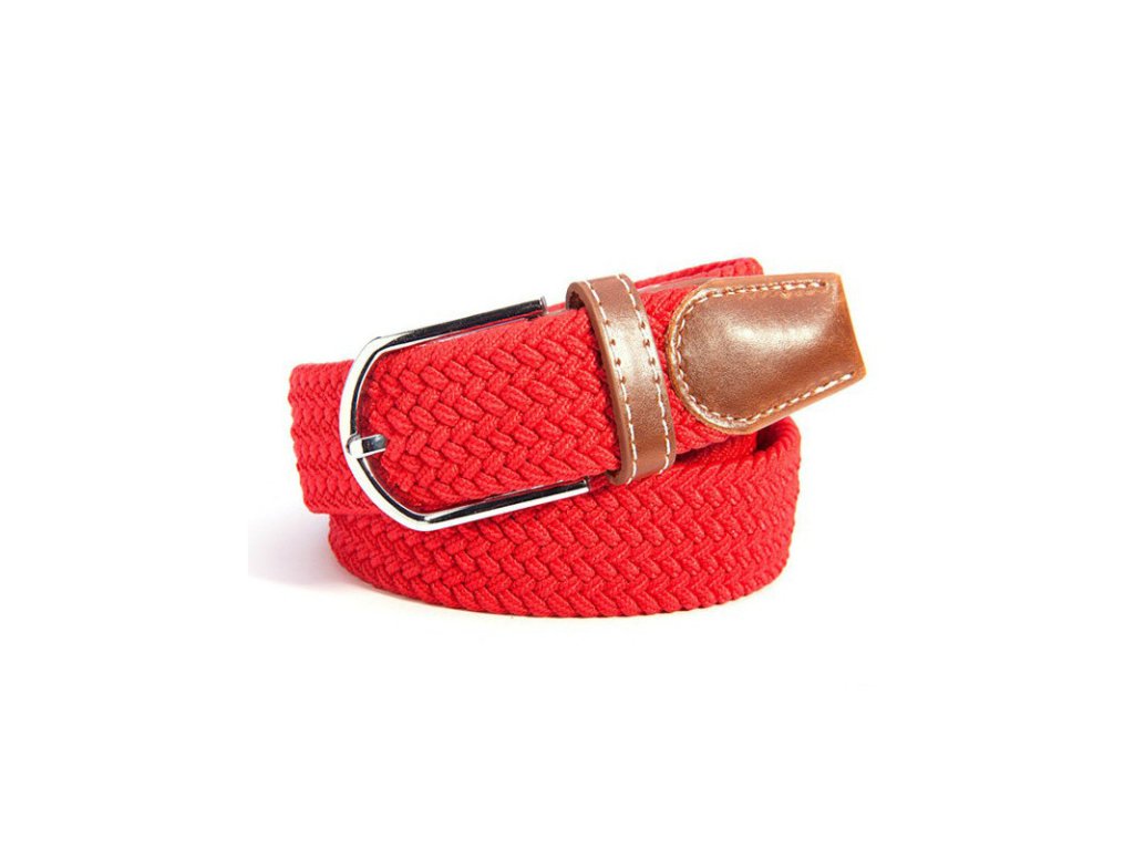 Elastický světle červený opasek / pásek se stříbrnou přezkou