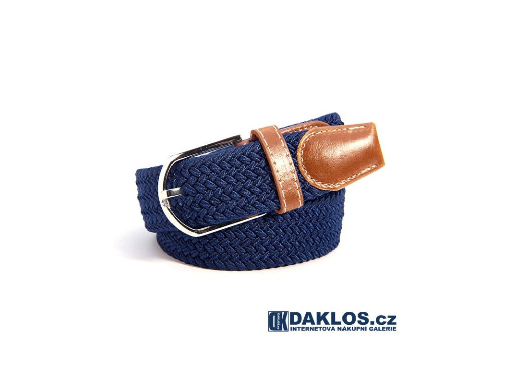 Elastický tmavě modrý opasek / pásek se stříbrnou přezkou