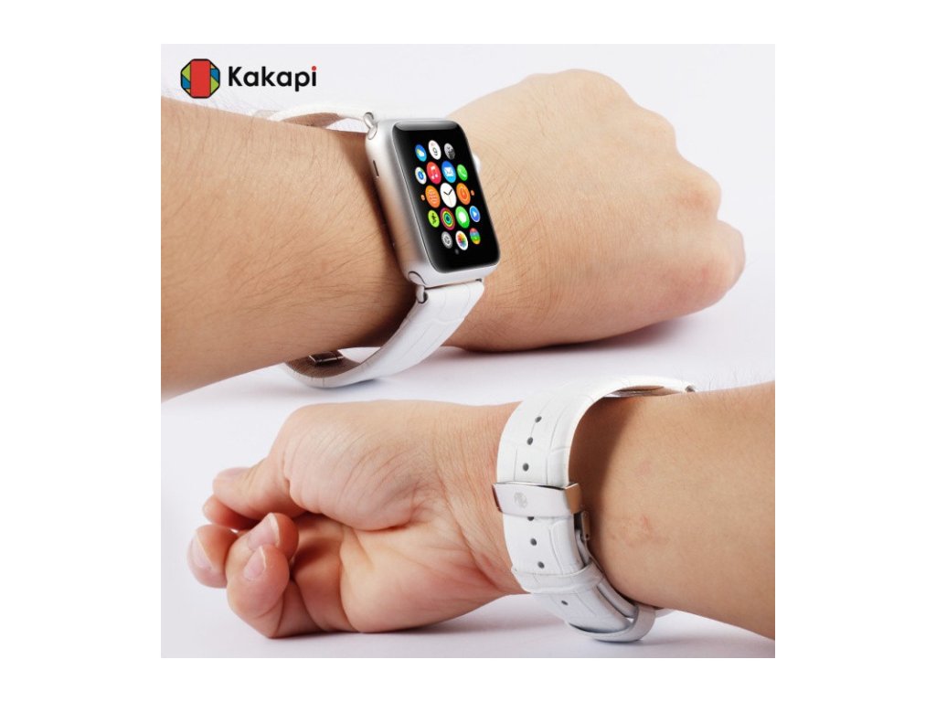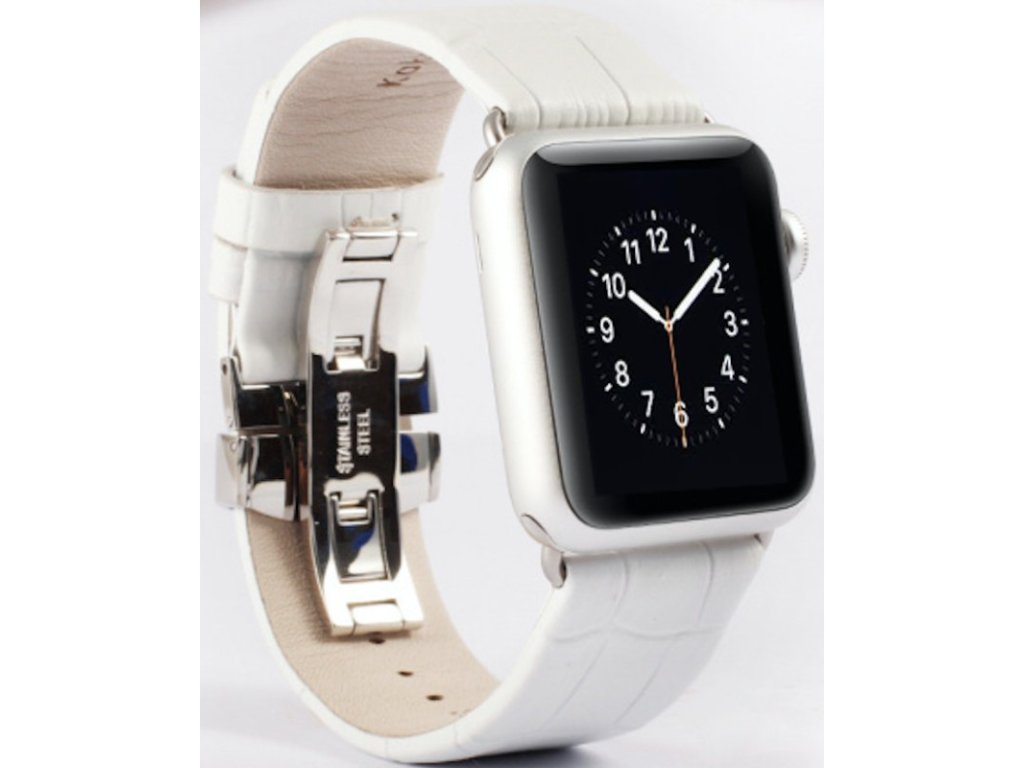 Elegantní řemínek krokodýlí kůže na Apple Watch - Bílý