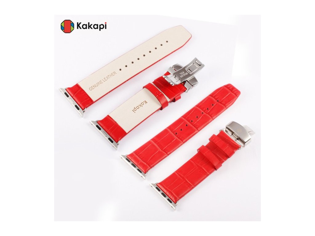 Elegantní řemínek krokodýlí kůže na Apple Watch - Red