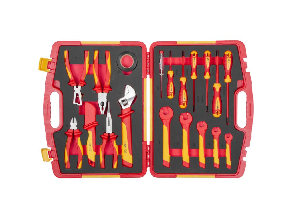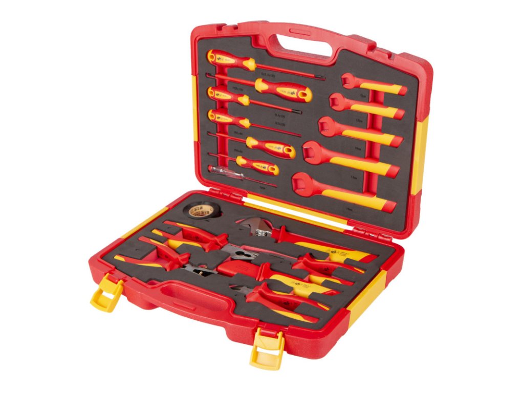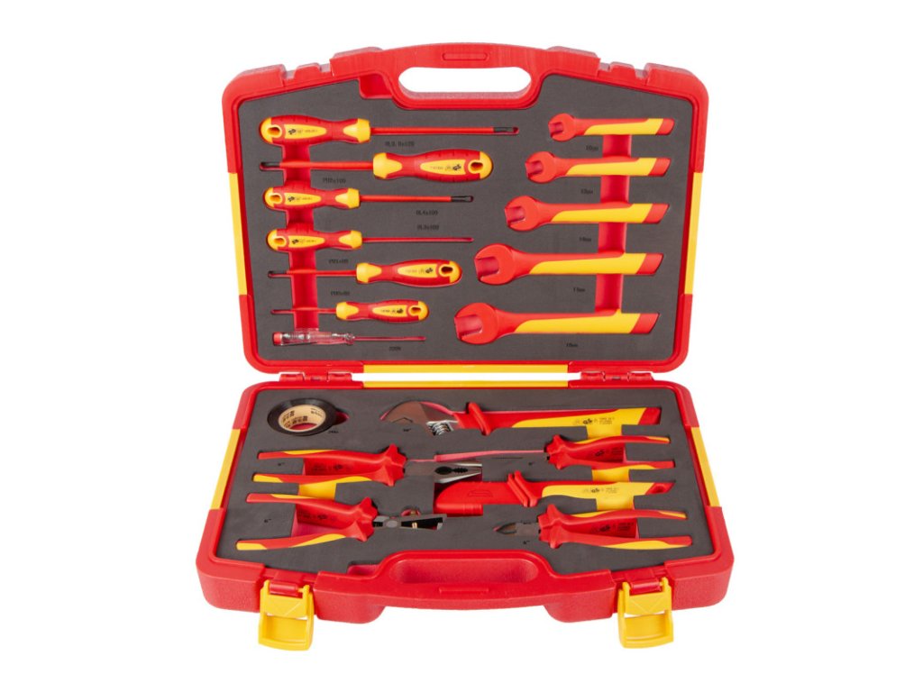 Sada VDE izolovaného nářadí obsahuje 19 kusů profesionálního nářadí, které splňuje přísné normy VDE a GS.