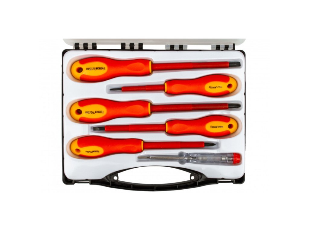 V sadě naleznete izolované šroubováky VDE: