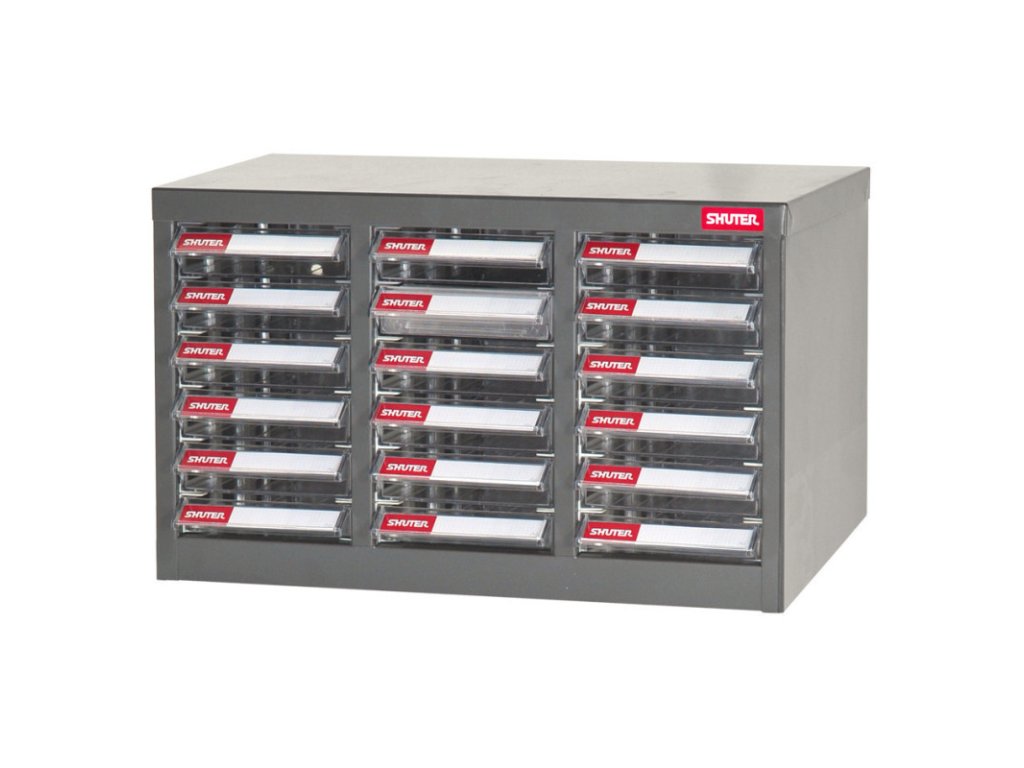 Galvanizovaný kovový organizér pro dílenský materiál a díly s 18 zásuvkami - A6-318P - Shuter