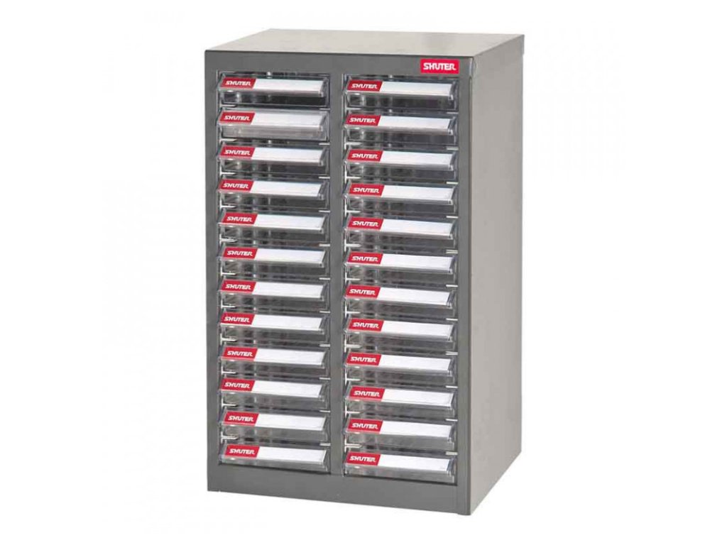 Galvanizovaný kovový organizér pro dílenský materiál a díly s 24 zásuvkami A6-224P - Shuter