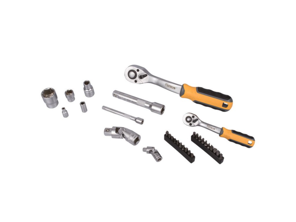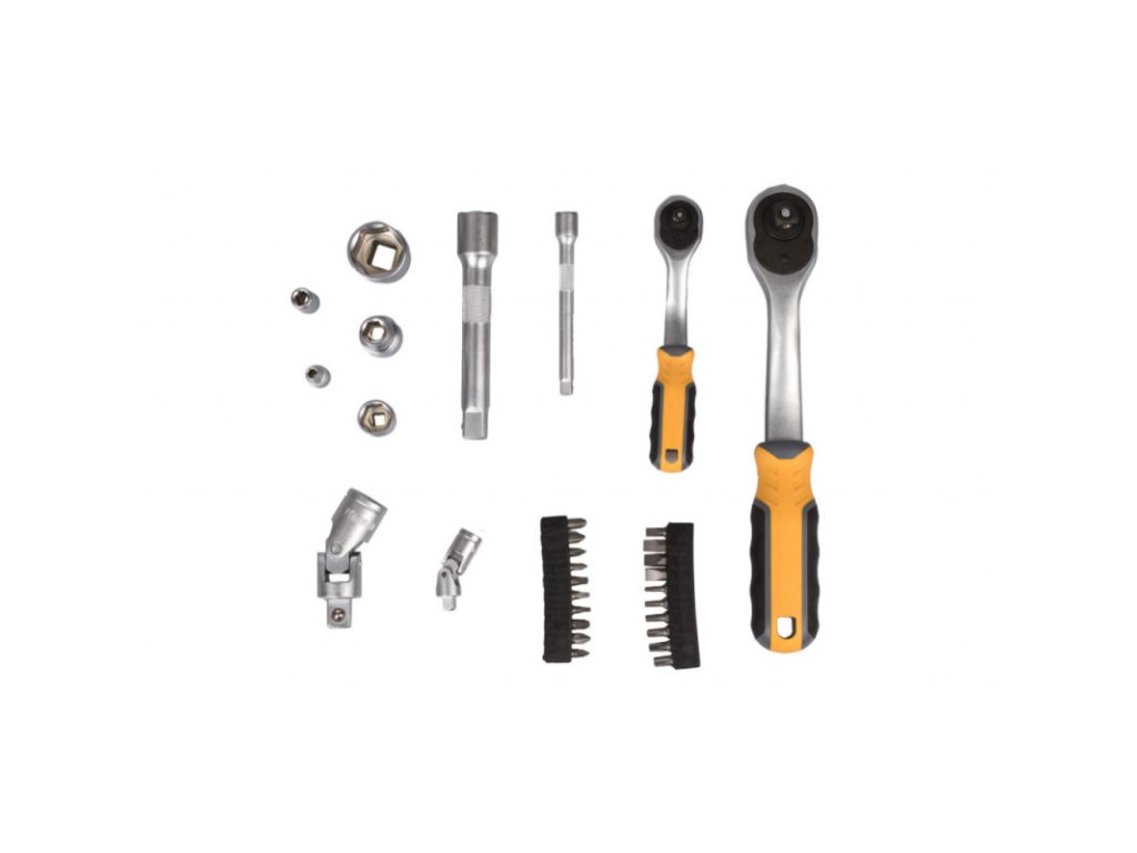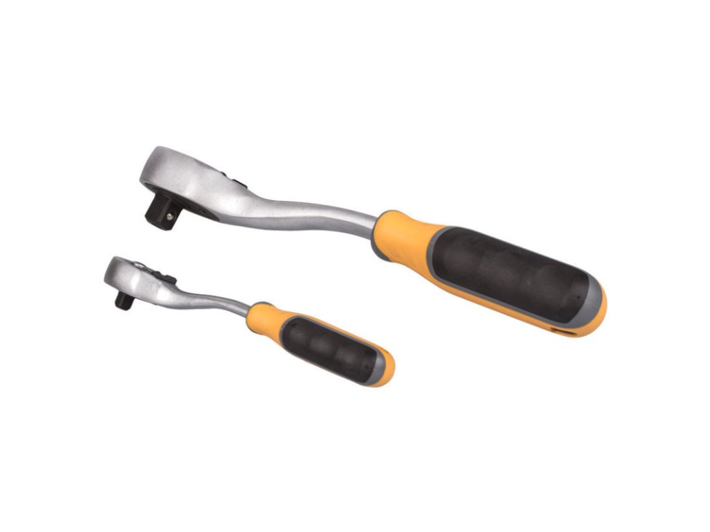Gola sada s ráčnou 1/2" a 1/4" v praktickém plastovém držáku, díky kterému sadu snadno přenesete nebo zavěsíte v garáži, dílně, apod. Díky ergonomickému tvaru rukojeti padnou ráčny dobře do ruky a docílíte tak pevnějšího úchopu. Rukojeť je navíc vyrobena z protiskluzových materiálů (kombinace plastu a gumy).