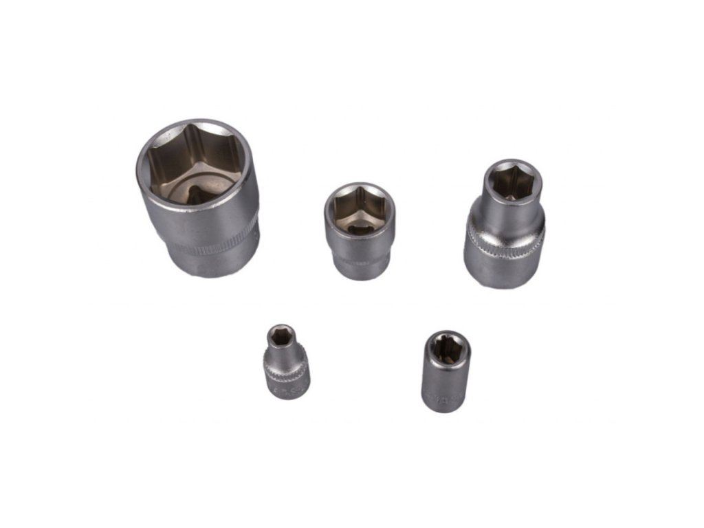 | 10 ks | nástrčné klíče 1/2″, délka 40 mm. Velikosti: 10, 11, 12, 13, 14, 15, 17, 19, 22 a 24 mm. |
